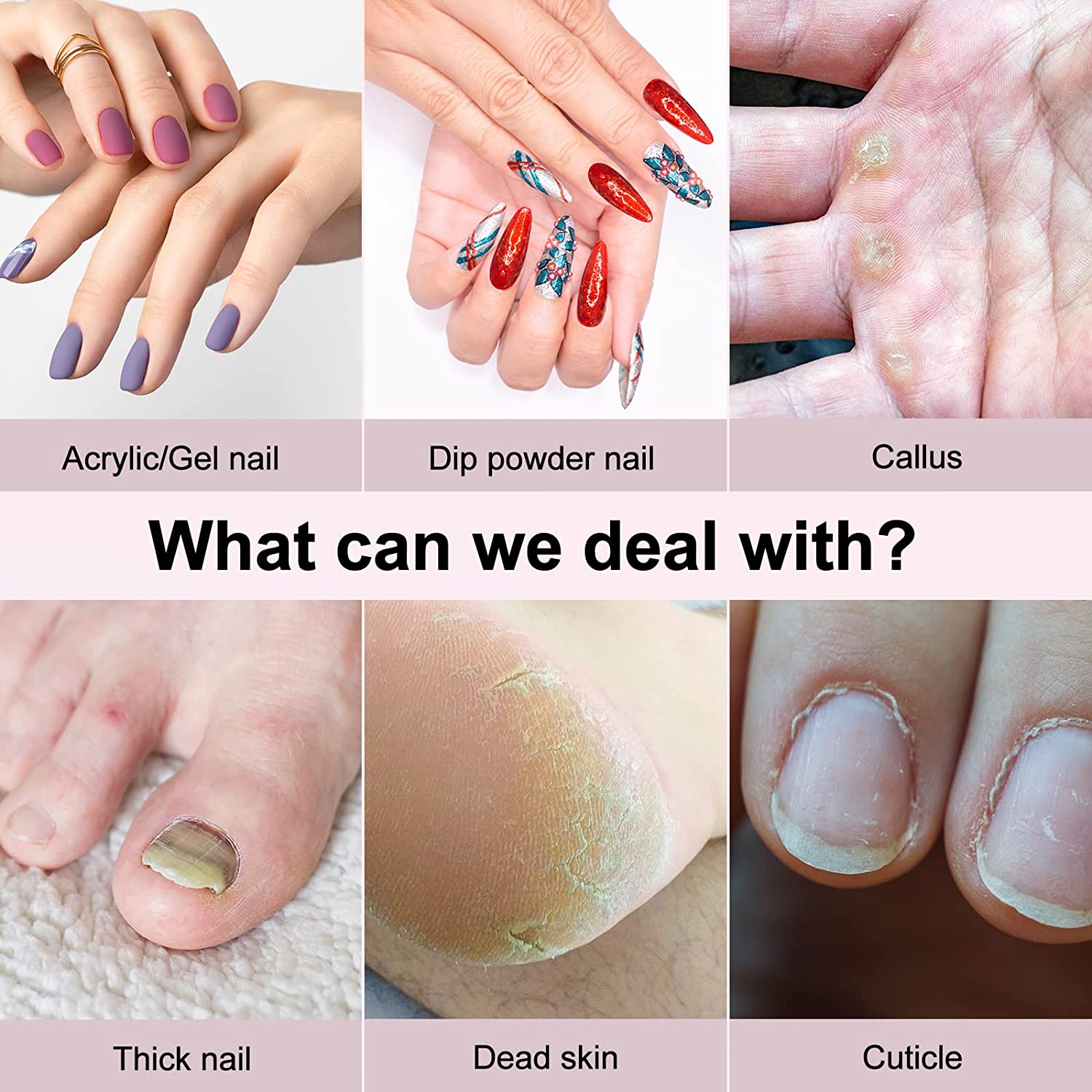 Multifunctional for Mandicure & Pedicure: With adjustable speeds and forward/reverse direction options, this nail drill machine comes with various professional grinder bits, you can customize your various manicure and pedicure routine to your liking: acrylic nails, gel nails, dip powder nails, cuticle and dead skin, calluses, thick nails and any other nail care needs