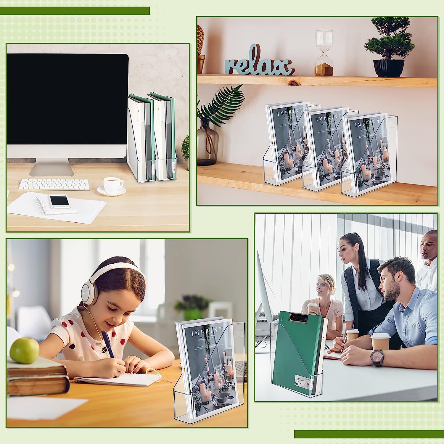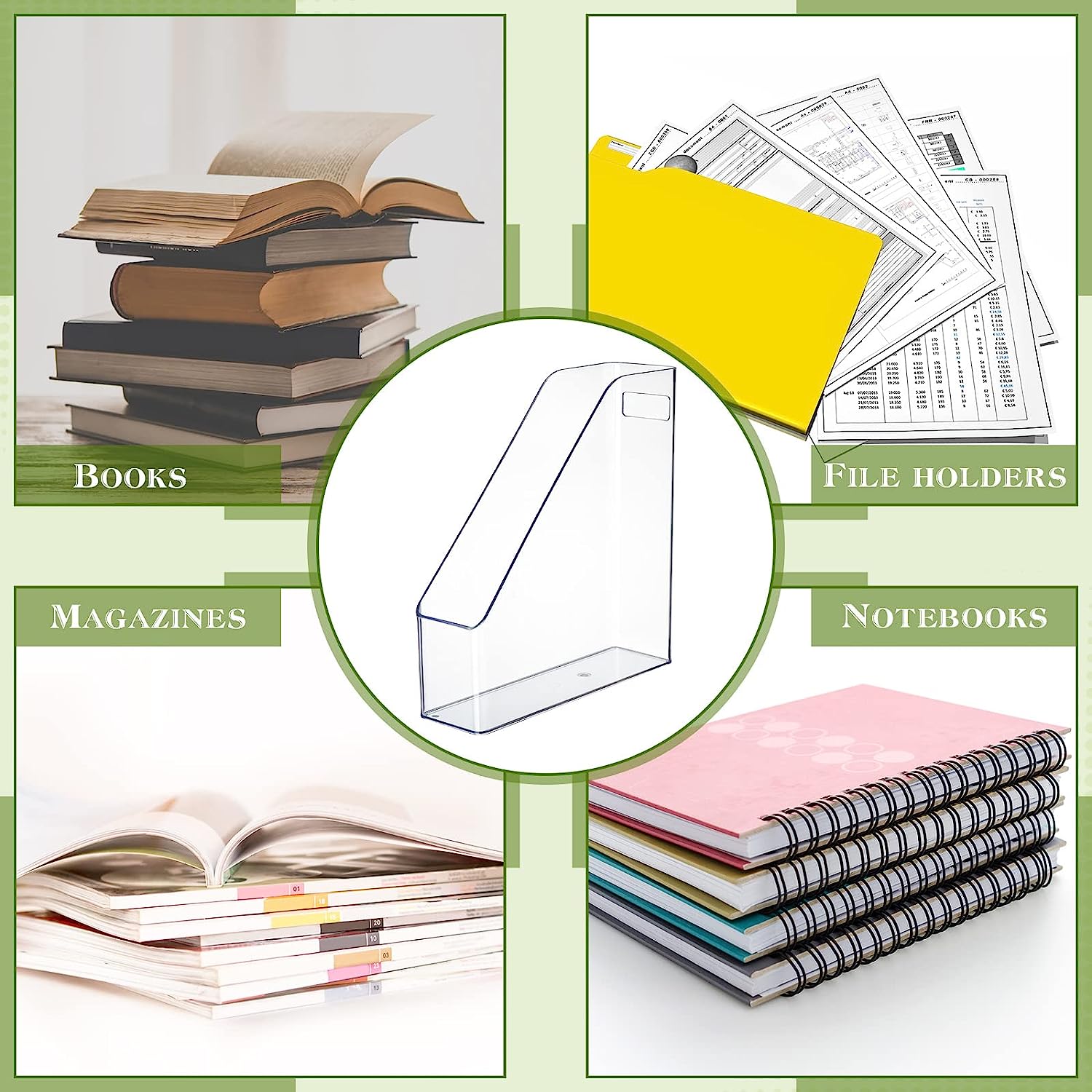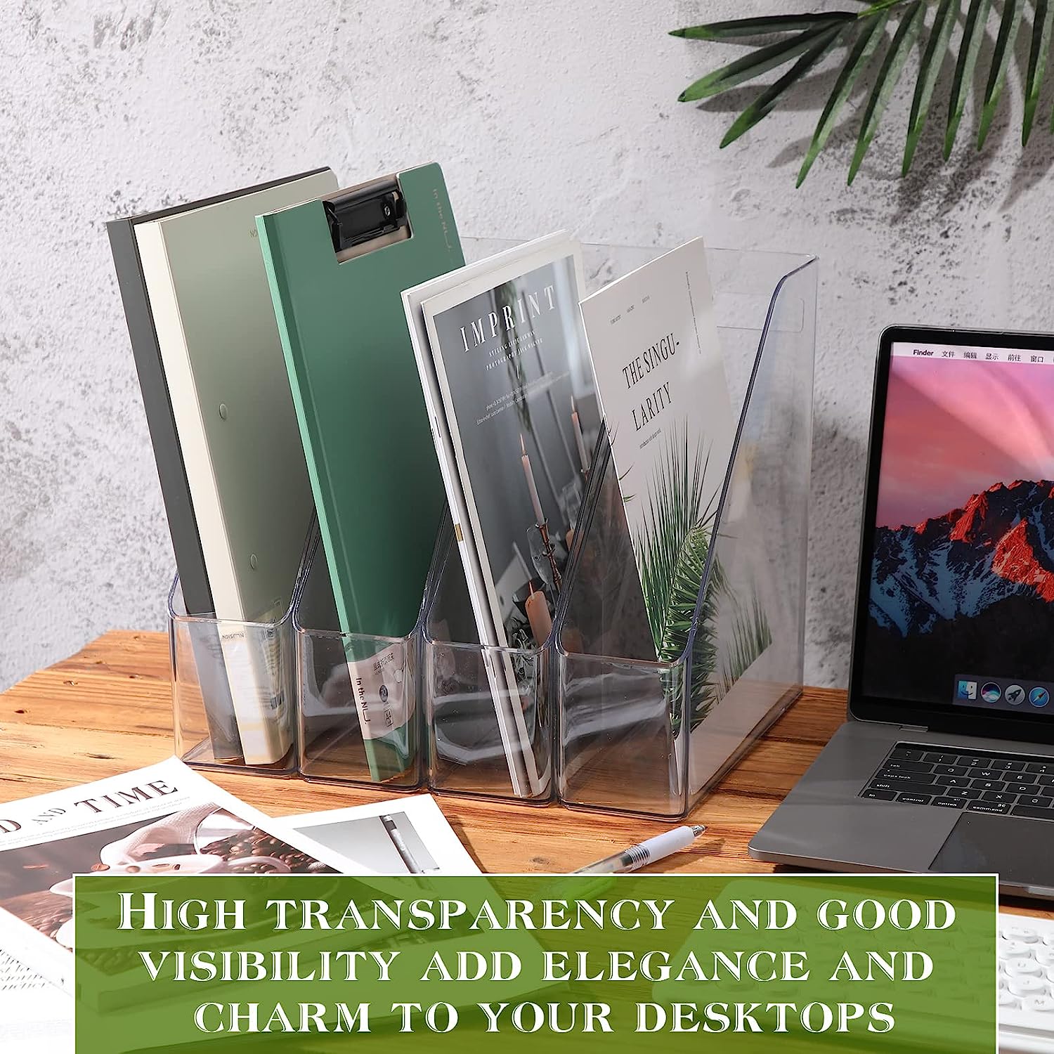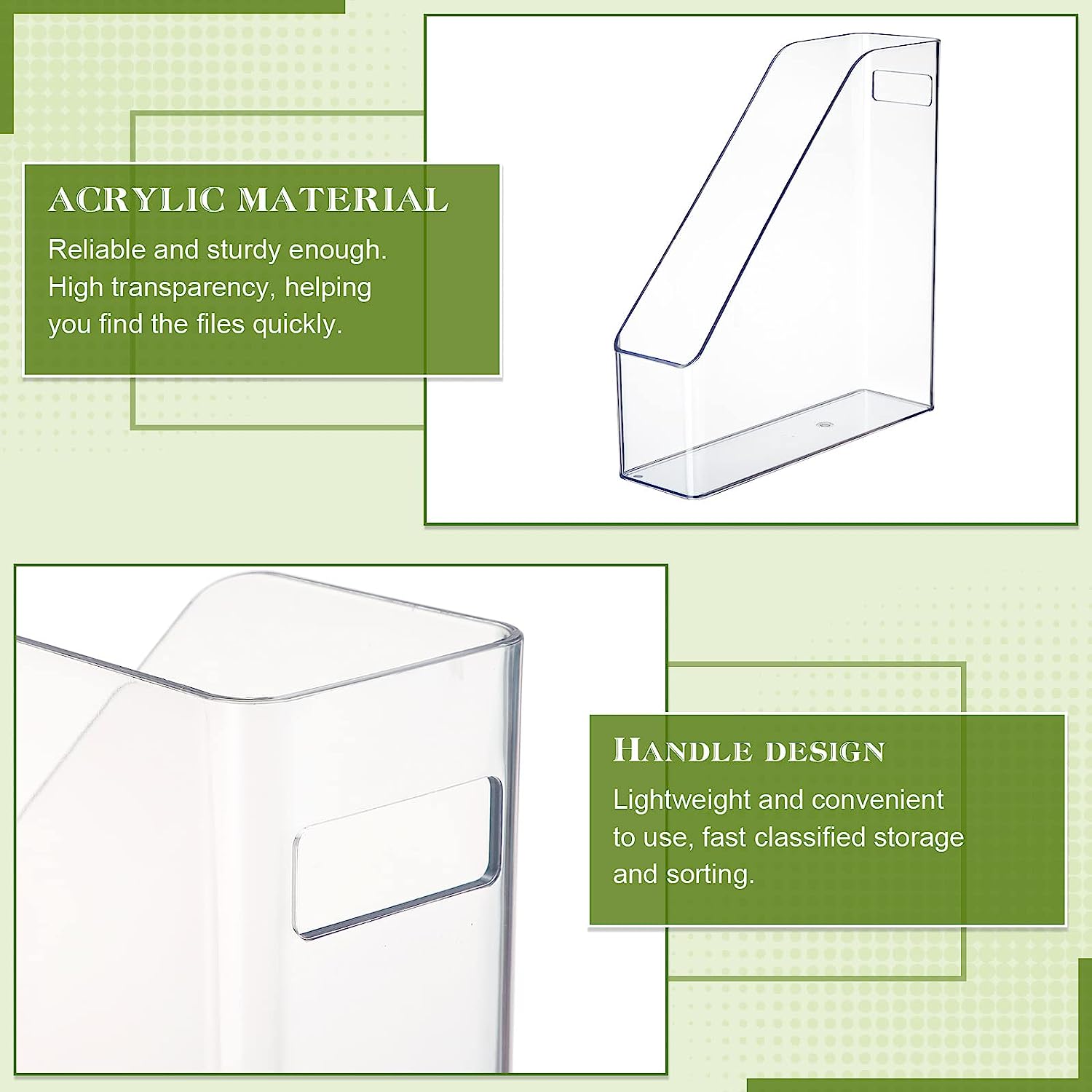 - Sturdy and Stable: these magazine file holders are made of acrylic material, reliable and sturdy enough, without pointed corners, and the bottom is equipped with rubber pads to avoid sliding; High transparency and good visibility add elegance and charm to your desktops