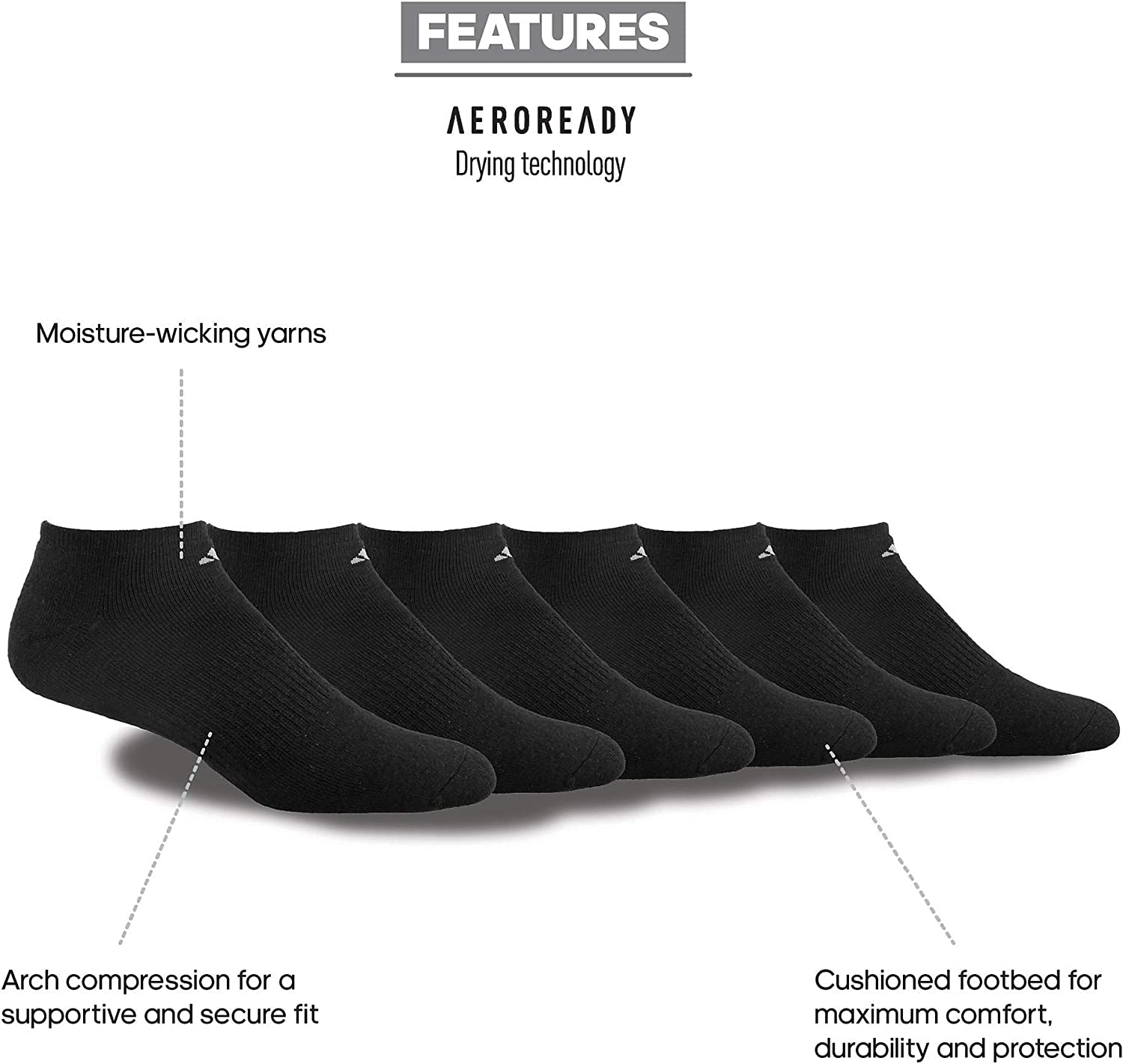 adidas Men's Athletic Cushioned No Show Socks (6-Pair)
