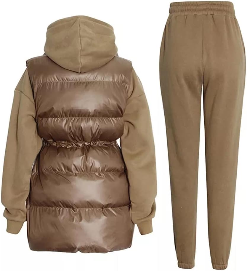 QJPAXL Solid Three Piece Set Womens Hooded Collar Sweatshirt Turtleneck Sleeve Cotton Vest High Waist Trousers Female Sets (Color : E, Size : M Code)