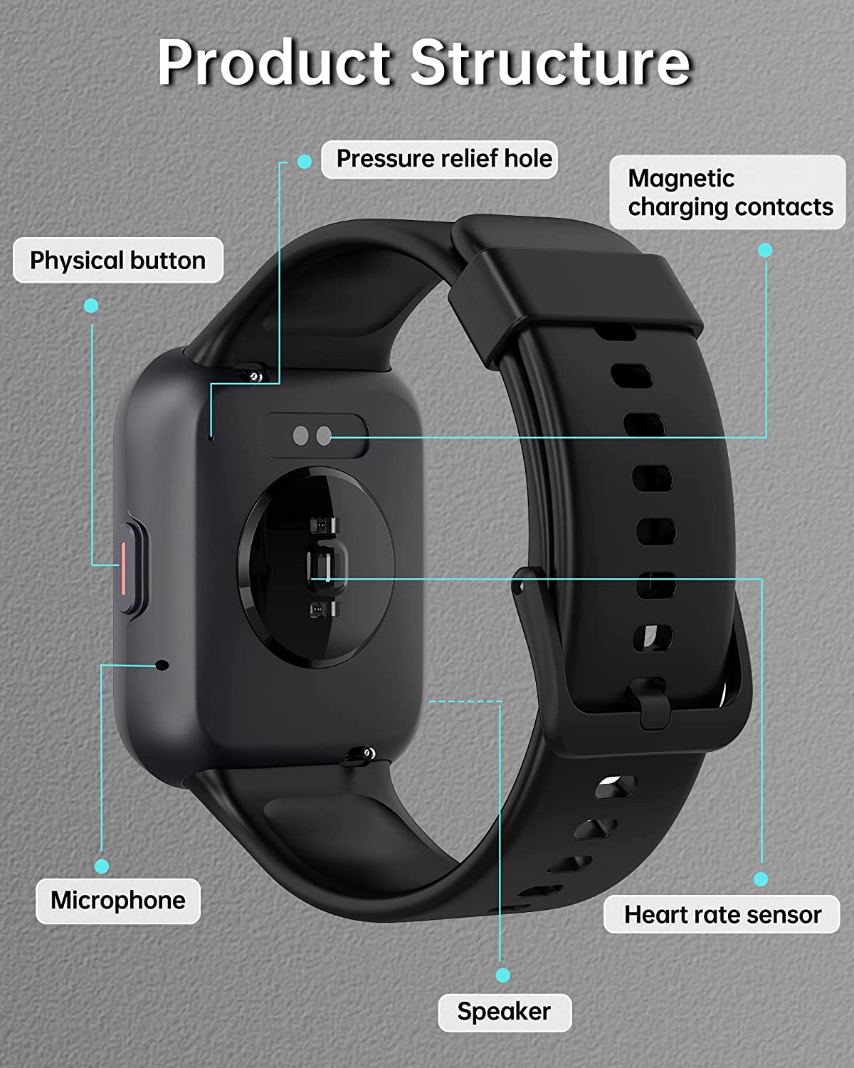 【Health & Exercise Monitoring & Gadget】 Track your health, including heart rate, blood oxygen saturation, sleep status and stress levels. Monitor daily steps, calories burned, distance. Choose one of the 60 exercise modes to record your workout data. If your heart rate is too high, the smartwatch will warn you and help you adjust the intensity and duration of your exercise. There are practical gadgets, such as pedometer, drinking water reminder, women's menstrual cycle record, weather, flashlight, music control, find phone, etc.