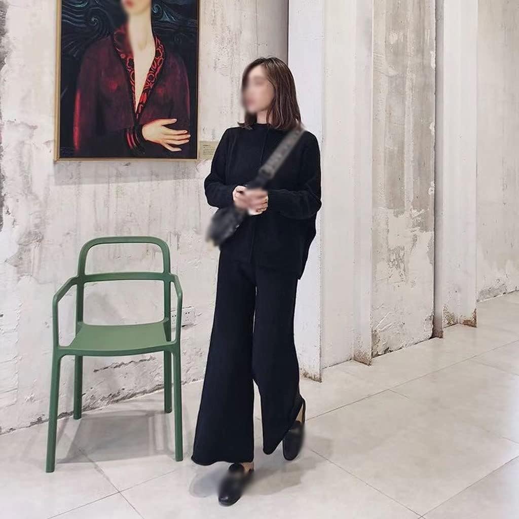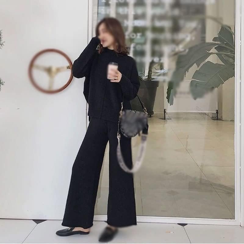 Walnut Age-reducing Thin Knitted Suit Women's Slit Sweater Wide-Leg Pants Autumn and Winter Two-Piece Set (Color : D, Size : S Code)