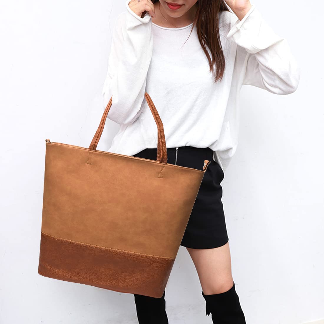 ?[LARGE CAPACITY]: The top-handle satchel bag features a classic design with a timeless look and sturdy handles that can carry all your essentials. This large capacity leather shoulder bag can fit in folders, A4 files, books, iPad, cosmetics, cellphone, charger, water bottle, wallet, keys and more.
