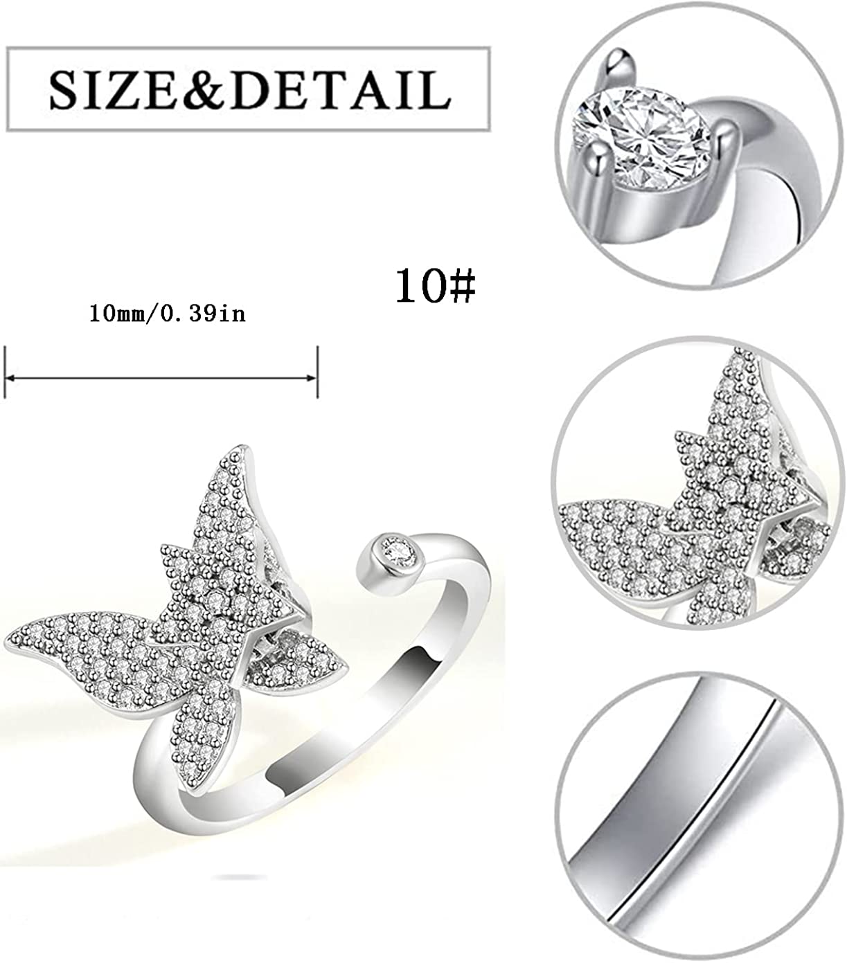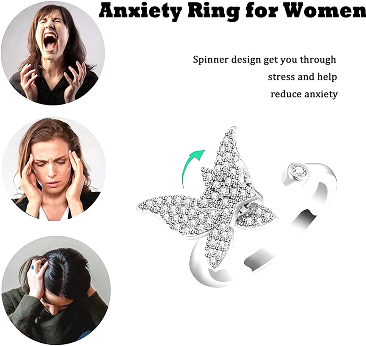 【Adjustable Open Ring】:These anxiety rings can easily adjust to fit the finger of different sizes, they are suitable for most women and girls. The rotatable design helps you divert attention and relieve boredom, relieve stress, and reduce anxiety while studying or working.