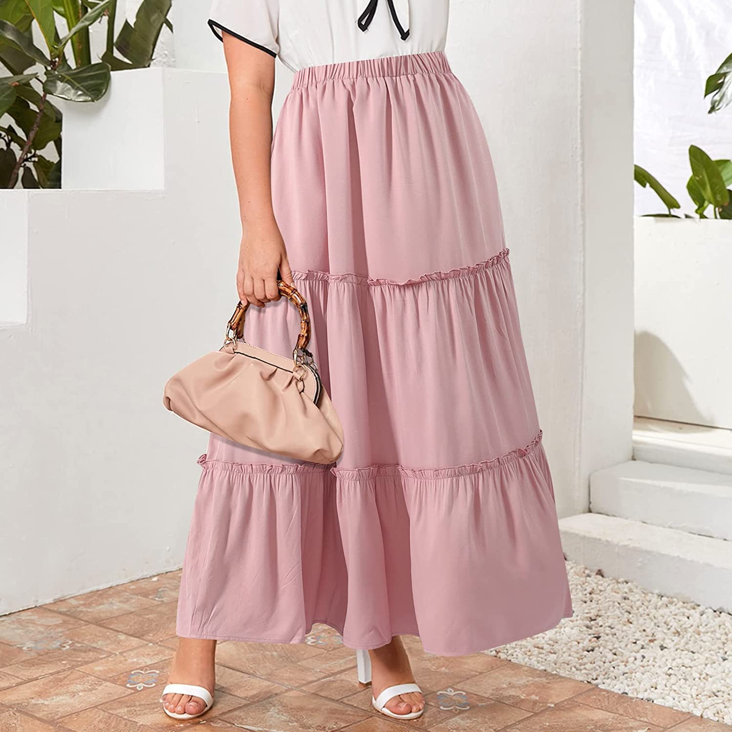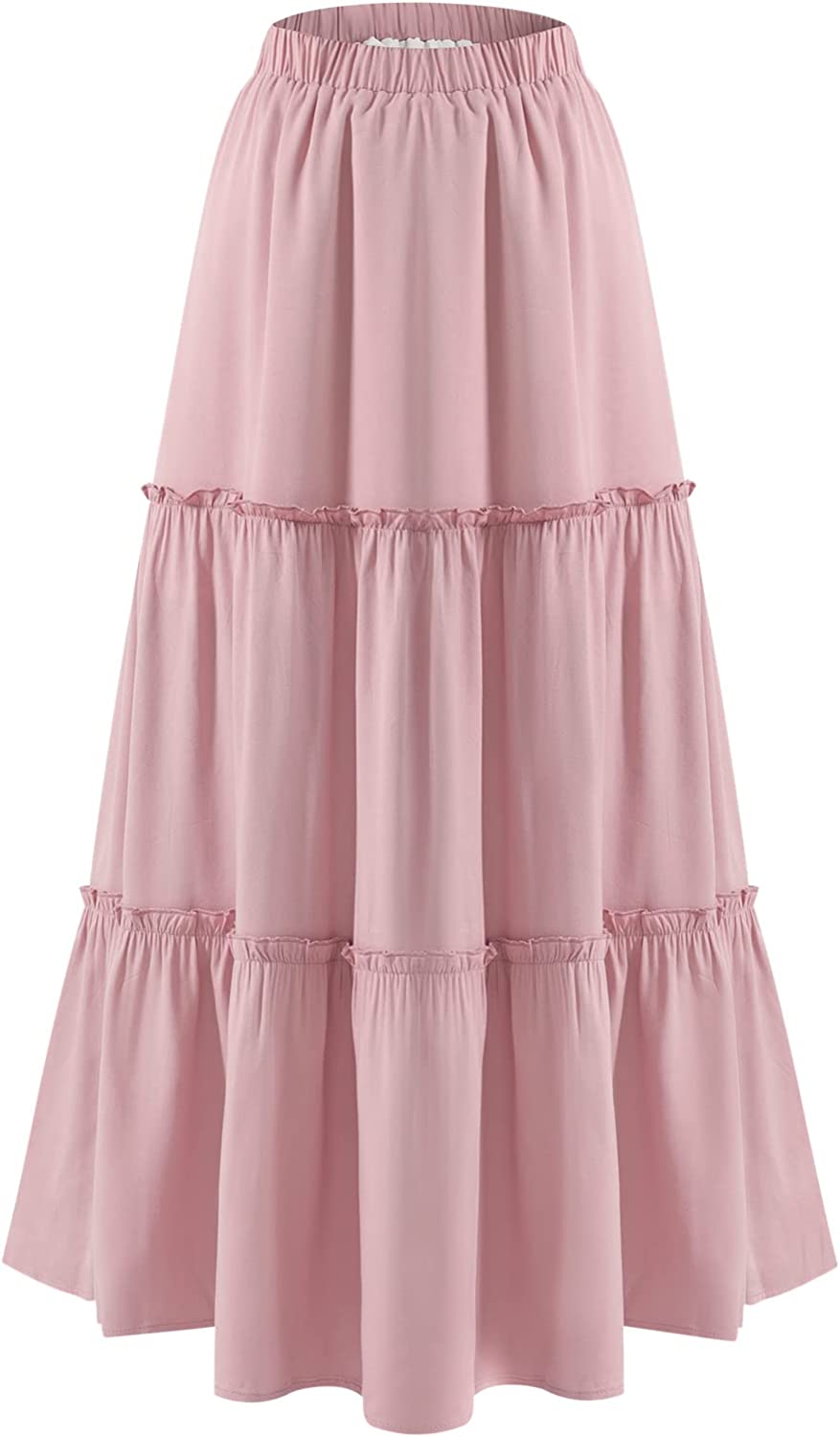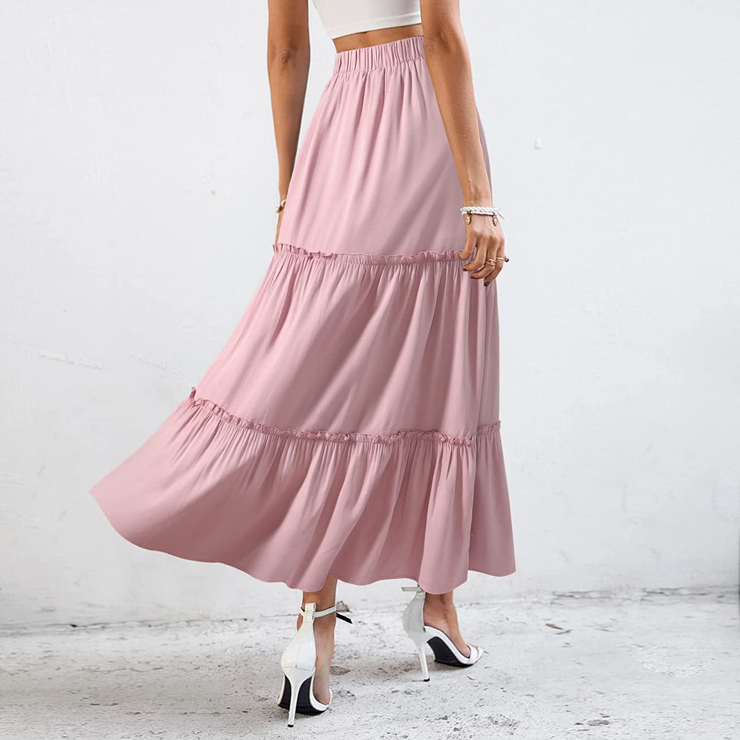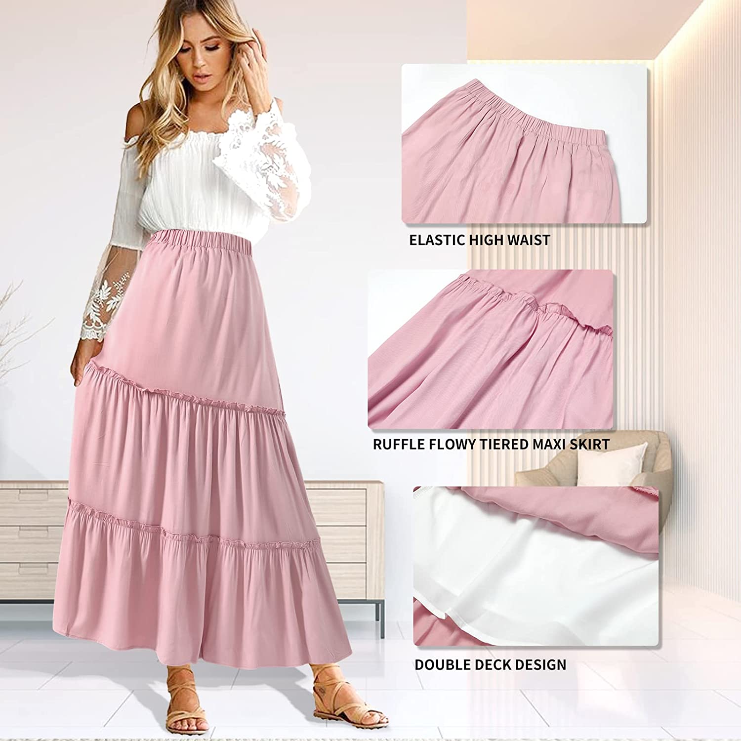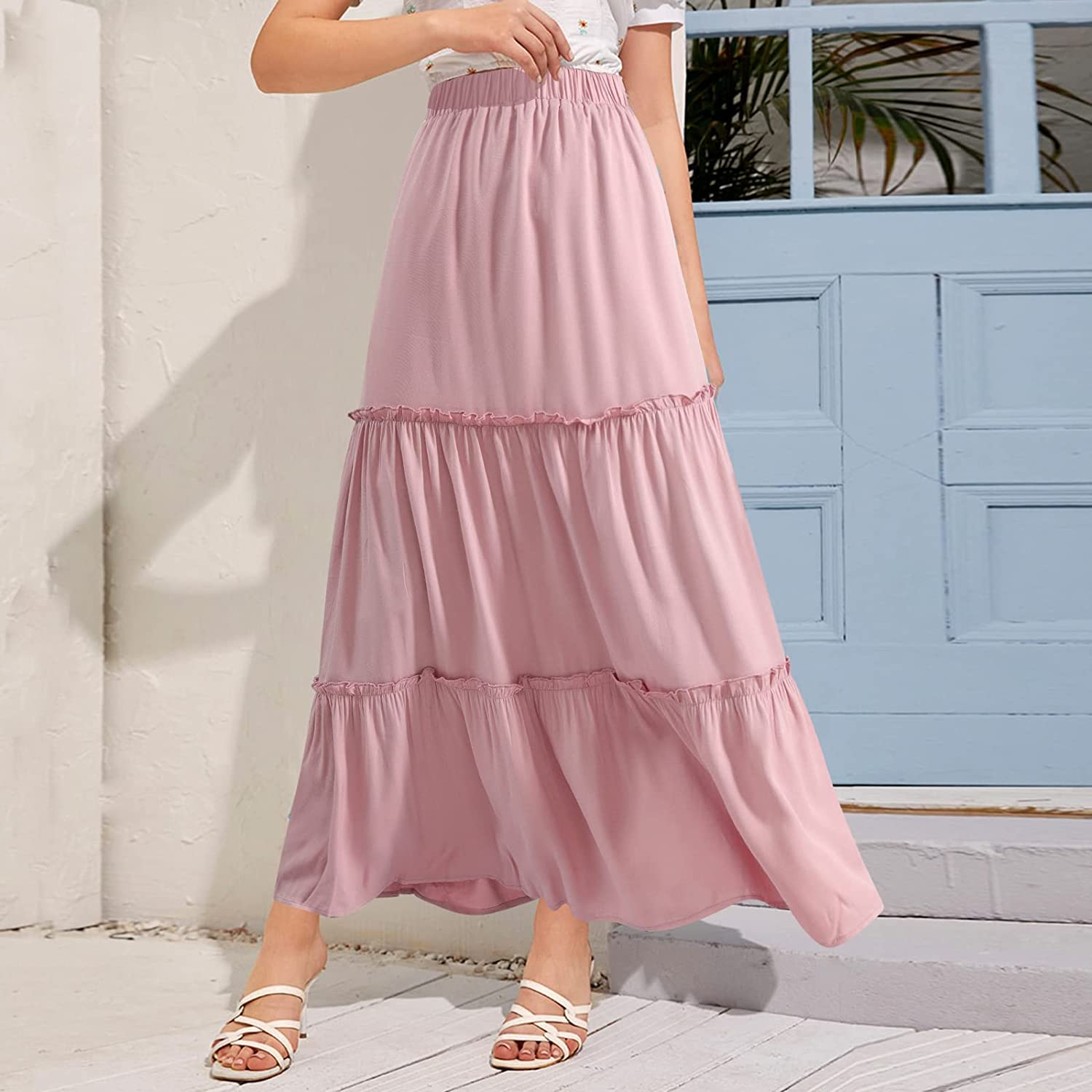 • Stylish Design: This classic solid color long maxi skirt is simple but fashion. A-line, ruffle layered, stretchy high waist, bohemian style, floor length, easy dress up or down. No matter what body type you are, this must-have skirt is a good choice for your summer day.