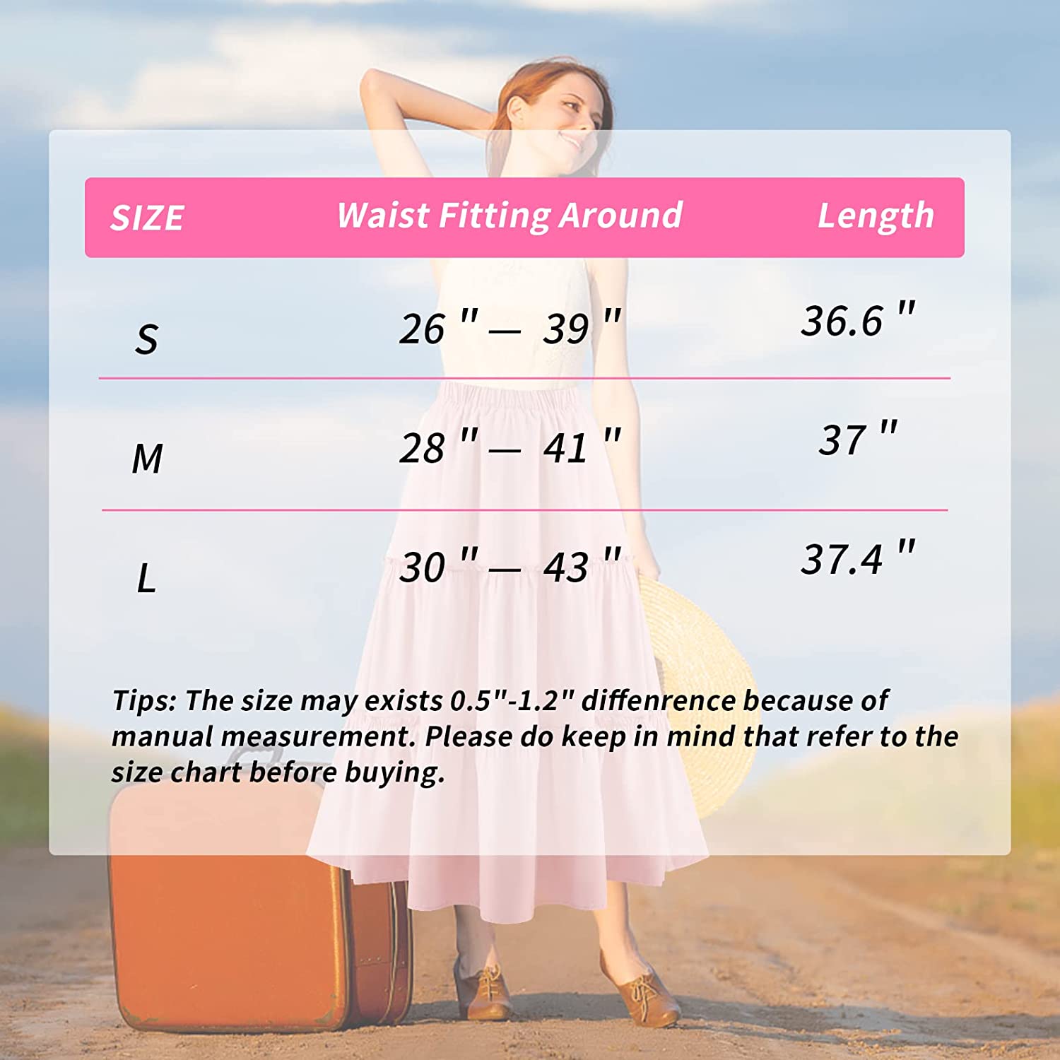 • Suitable Size: Waistline: S can be stretched from 26 to 39 inch; M can be stretched from 28 to 41 inch; L can be stretched from 30 to 43 inch. Skirt Length: S approx 36.6; M approx 37 inch; L approx 37.4 inch. The highly elastic waistband ensures a comfortable fit across a wide range of sizes.
