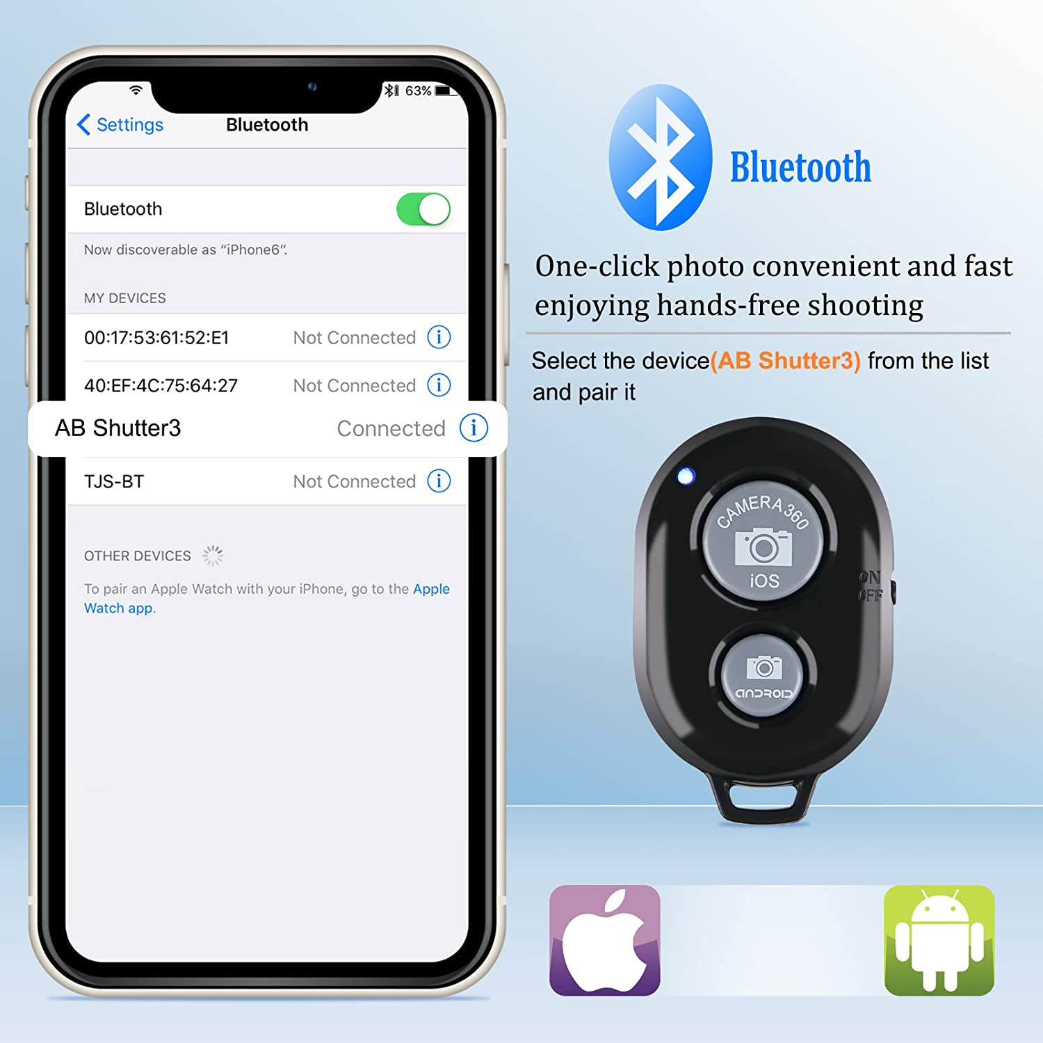 • 【FAST BLUETOOTH REMOTE SHUTTER】Taking pictures or start recording immediately after pressing the button 1-2s. Our phone tripod is equipped with a wireless bluetooth remote, it does not need to download any applications, let alone provide any information, and the operation is simple and easy to connect. Shoot and Save. Allows you to take selfies or group photos easily from a distance of up to 10m/33ft. PS: To avoid situations where the remote's on/off button sometimes turns itself on in your pocket. Our remote with a switch button, so you can turn it off at any time and save power.