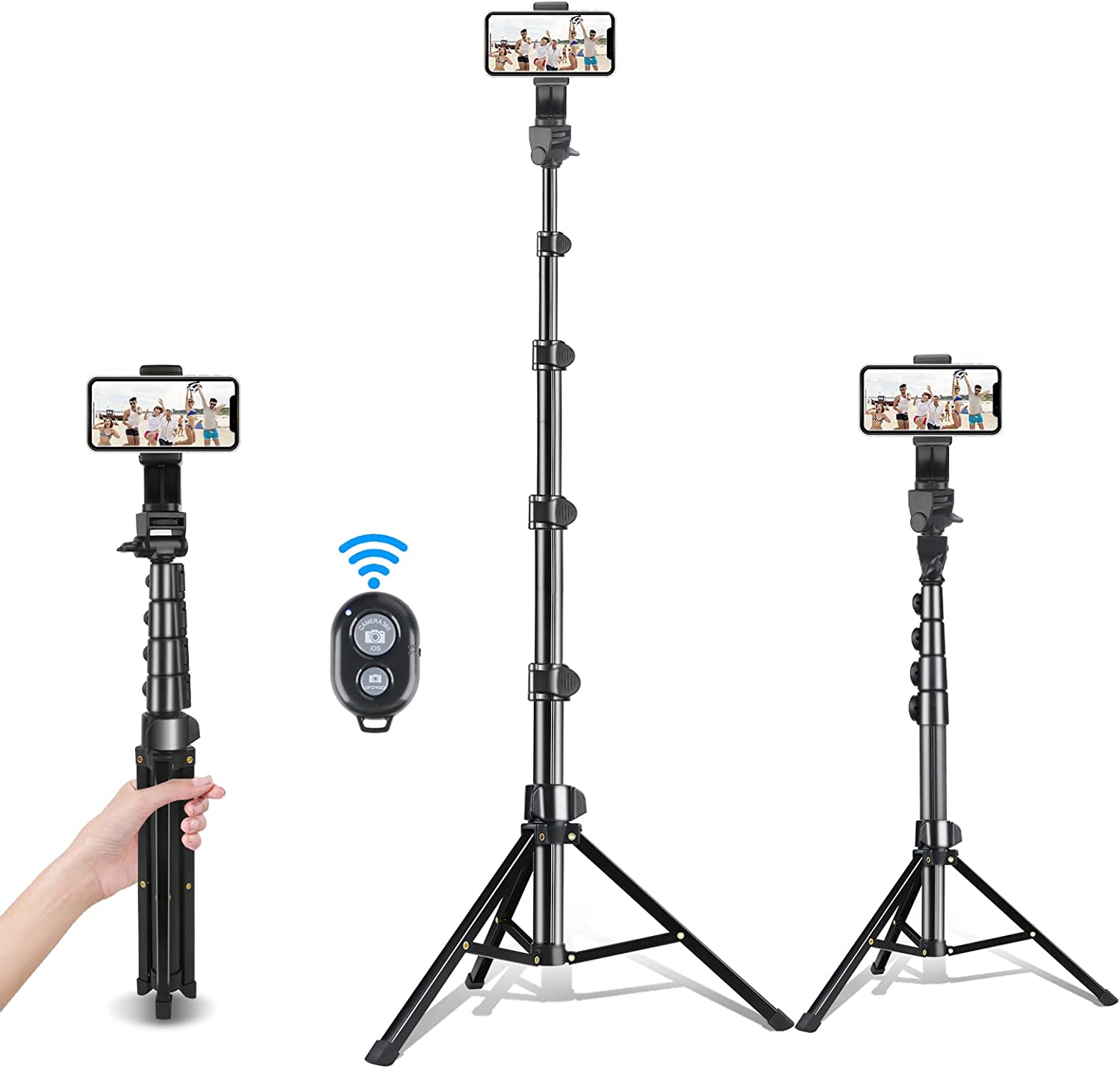 67" Phone Tripod, Extendable Tripod with Wireless Remote & Cell Phone Holder, Cell Phone Tripod Perfect for Selfies, Video Recording, Live Streaming, Compatible with Smartphone & Camera