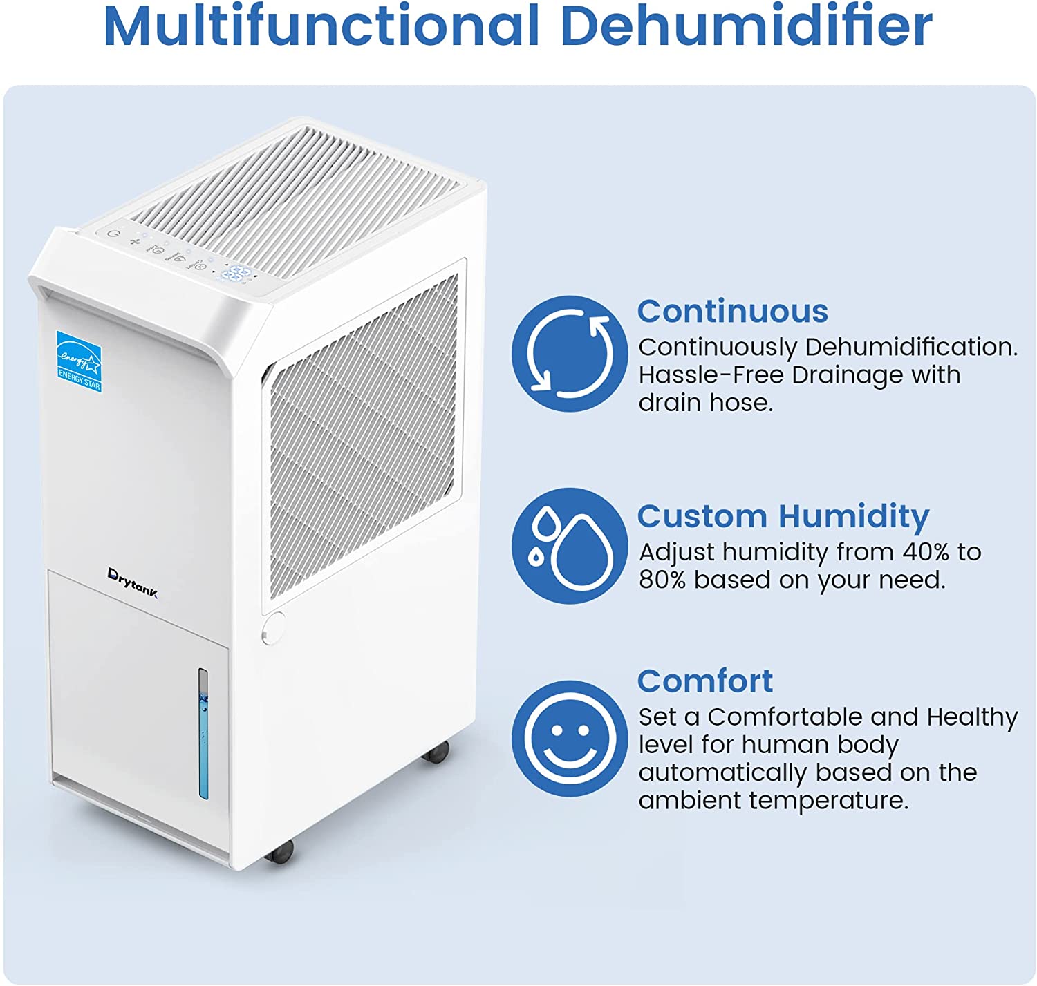 | Special Feature | Energy Star Most Efficient 2022, Adjustable Humidity Control, Automatic Moisture Remove, Automatic Shutoff, Continuous Draining, Digital Display, Manual, Timer, Washable Filter, Ergonomic Handle, Portable, Removable Tank, Automatic Defrost |