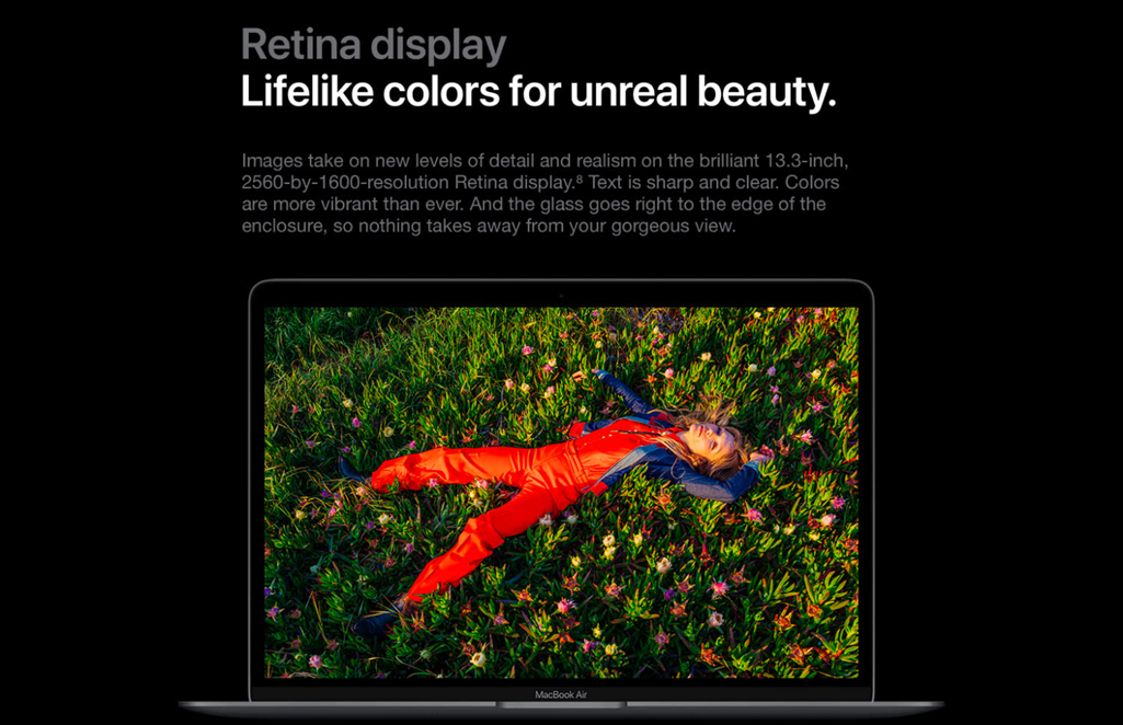| Display | 13.3-inch (diagonal) LED-backlit display with IPS technology; 2560-by-1600 native resolution at 227 pixels per inch with support for millions of colors |