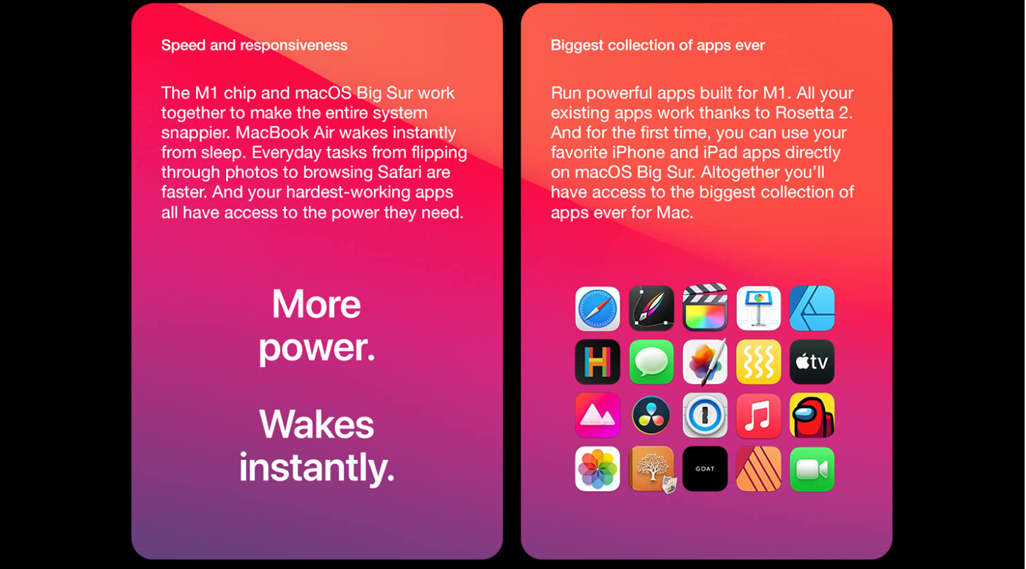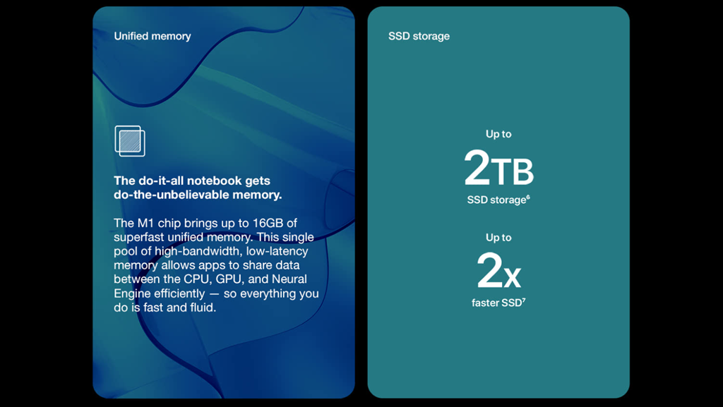 | Processor | System on Chip (SoC) Apple M1 chip; 8-core CPU with 4 performance cores and 4 efficiency cores; 16-core Neural Engine |