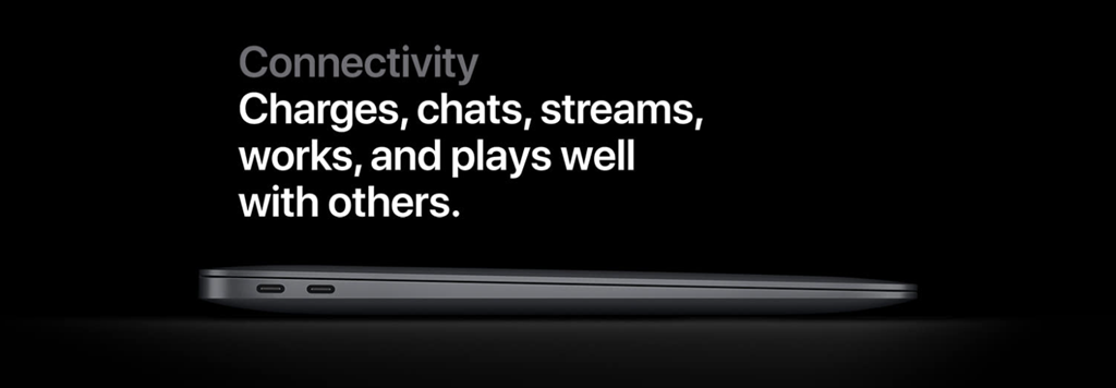 | Charging and Expansion | Two Thunderbolt / USB 4 ports with support for: Charging, DisplayPort, Thunderbolt 3 (up to 40 Gbps), USB 3.1 Gen 2 (up to 10 Gbps) |