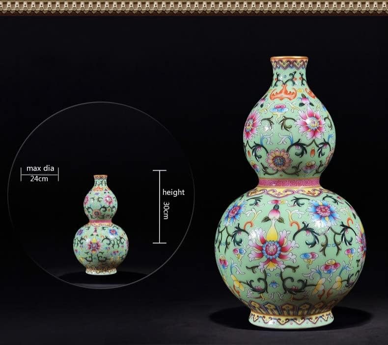 ZLXDP Chinese Style Antique Green Ceramic Flower Vase Collection Jingdezhen Porcelain Gourd Decoration Vase