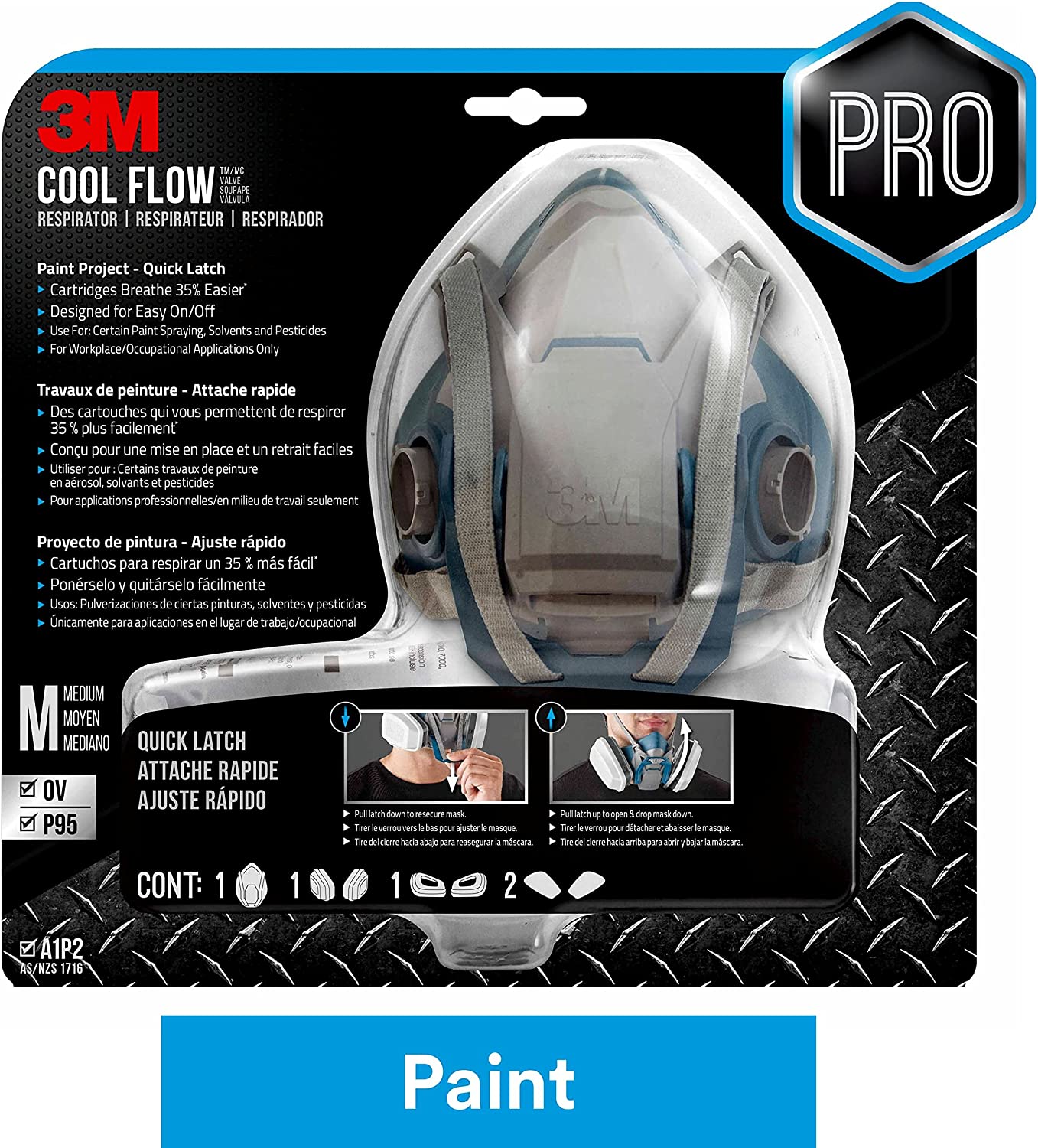 The medium 3M Performance Respirator Paint Project 6211 helps provide protection against particles and certain organic vapors with the convenience of an all-in-one kit. Designed for professionals, this reusable respirator is excellent for spray painting and projects that require solvents or pesticides. The swept-back design of the 3M Organic Vapor Cartridges allow a wide field of view and, when combined with the provided filters, can help provide effective particulate filtration on the job. When you're handling potentially harmful chemicals, it's important to help protect yourself¬—so make sure to pick up the 3M Performance Respirator Paint Project 6211.