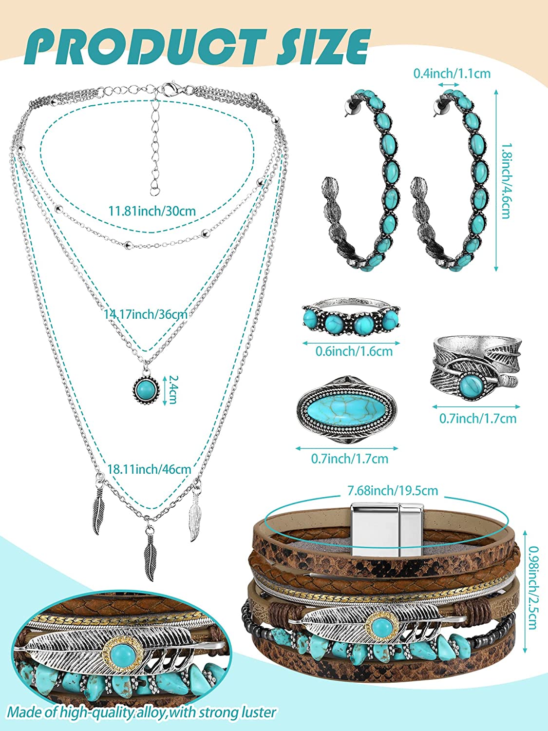 Trusted Material: our western jewelry for women is made of quality alloy, turquoise and faux leather, friendly to your skin, solid and lightweight, sturdy and not easy to break, deform or fade, can be applied for a long time, will not bring much burden to you