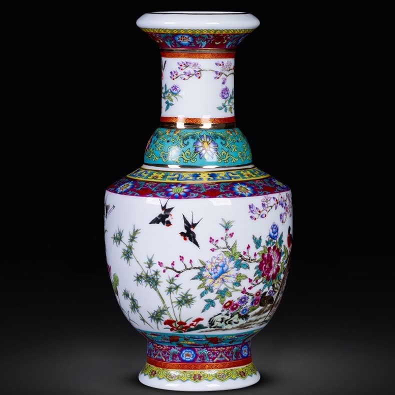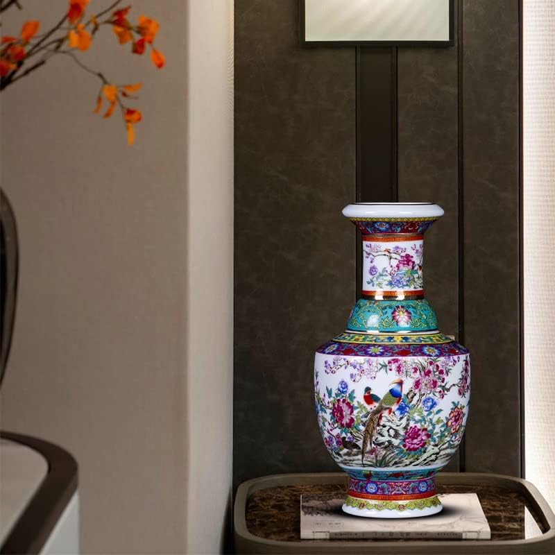 ZSEDP Jingdezhen Ceramic Antique Enamel Flower Vase Flower Arrangement Decoration Chinese Style Living Room
