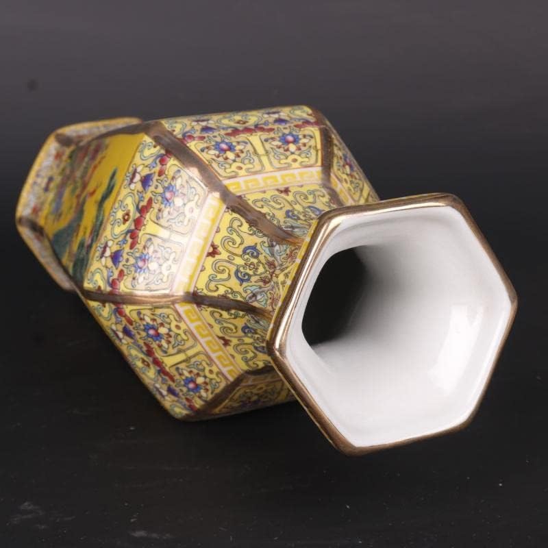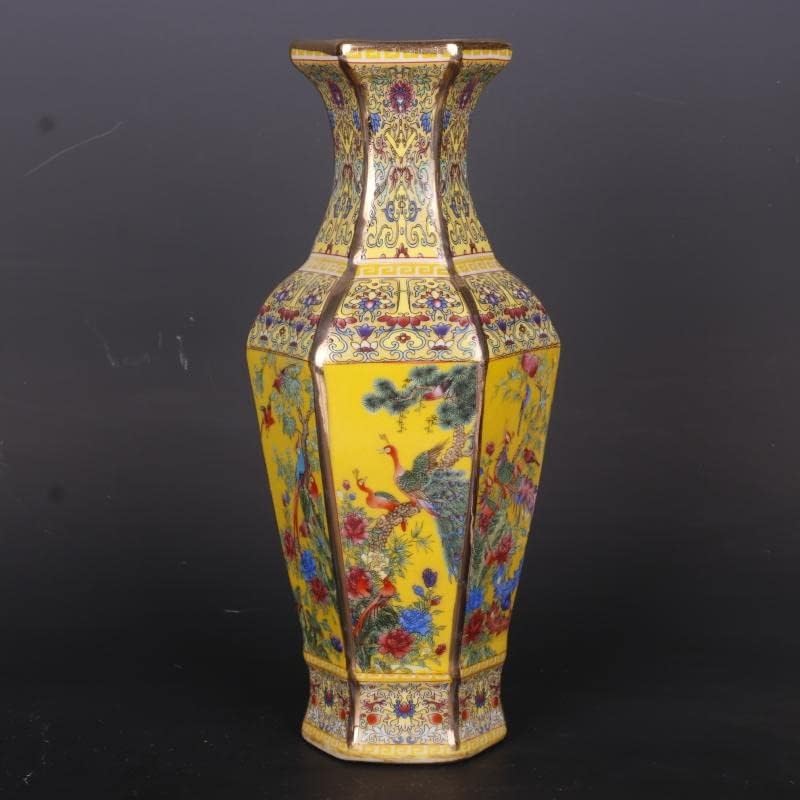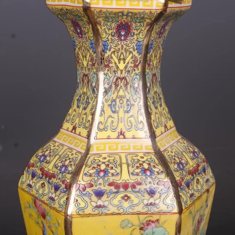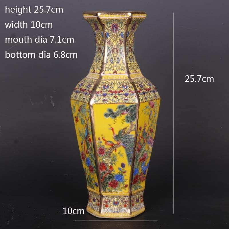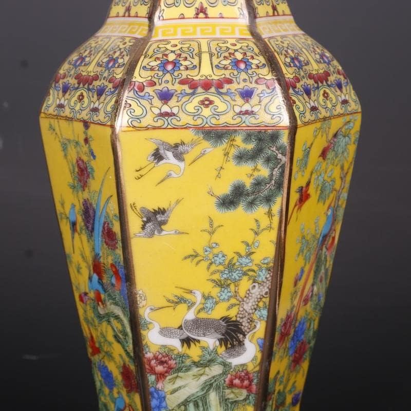 ZSEDP Jingdezhen Antique Enamel Hexagons Vase Yellow Flower and Bird Pattern Vase