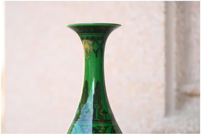 ZSEDP Antique Green Glaze Ceramic Vase Flower Vase Handmade Furnishing Articles Sitting Room Bedroom Decoration