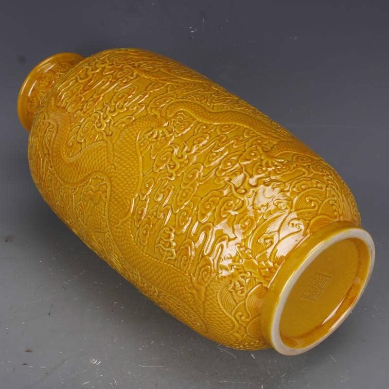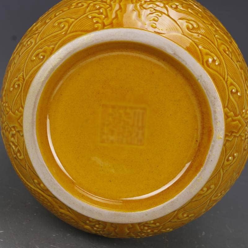 ZSEDP Antique Yellow Glaze Embossed Home Decoration Porcelain Flower Vase Collection Vase