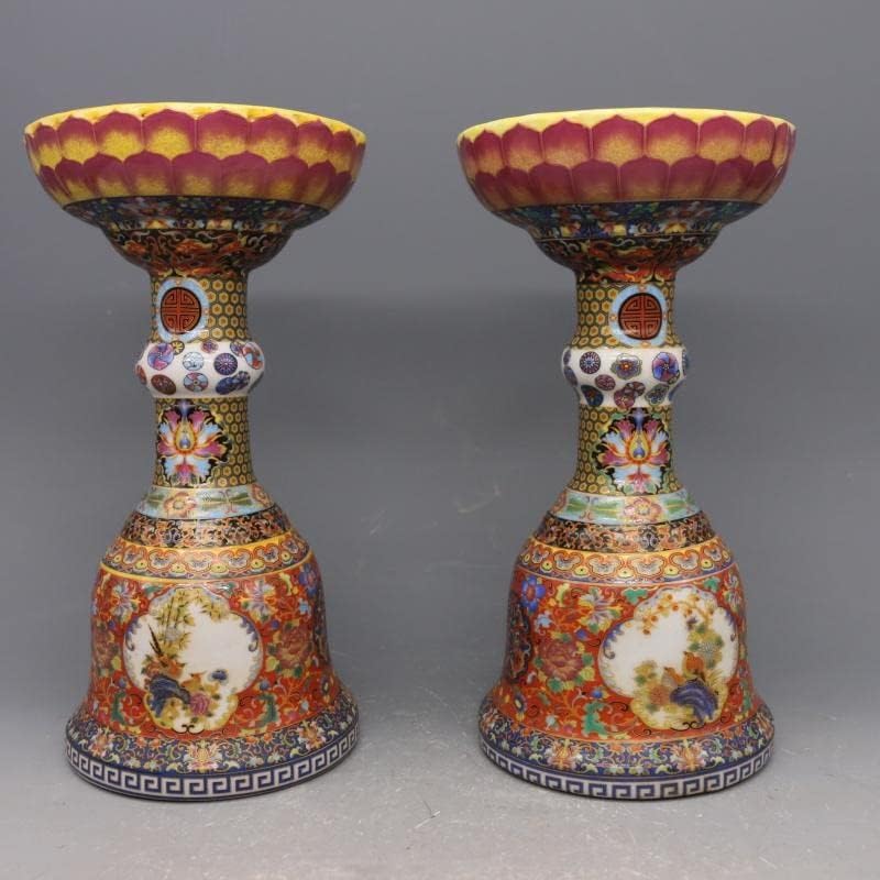 ZSEDP Jingdezhen Enamel Flower Pattern Candlestick Jingdezhen Old Antique Porcelain Ornaments