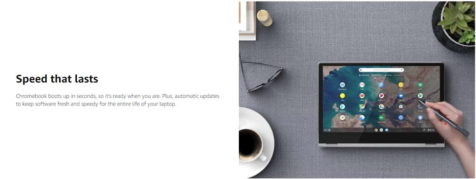 Hit the ground running with the IdeaPad Flex 5i Chromebook, one of the most versatile Chromebooks on the market. This 13" notebook computer merges accessibility with power, with an 11th Generation Intel® Core™ i3 processor to handle even the most arduous tasks without a hint of strain. With the slim and light 360° convertible design, you can use it as a laptop, in tablet mode for an intuitive touchscreen experience, or in stand or tent mode to show off your latest photo slideshow or stream your favorite movies. The 10 hours* of battery life means that you can take it with you wherever you go without worry while playing games or browsing the Internet via WiFi. The IdeaPad Flex 5i Chromebook is designed with a physical privacy shutter. When you're not on a video call, simply slide the shutter over the webcam to secure your privacy. And as a Chromebook, you can quickly access all your files, photos, music, and more with ease – just login to your Google account and you're ready to go! Talk to Google to help you multitask, control your smart home devices, and manage your day. Stay connected with built-in WiFi and Bluetooth®, 2 USB-C ports, a USB-A port, a microSD™ card reader, and an audio combo jack.* Battery life based on testing with PLT (power load test). Battery life varies significantly with settings, usage, and other factors.