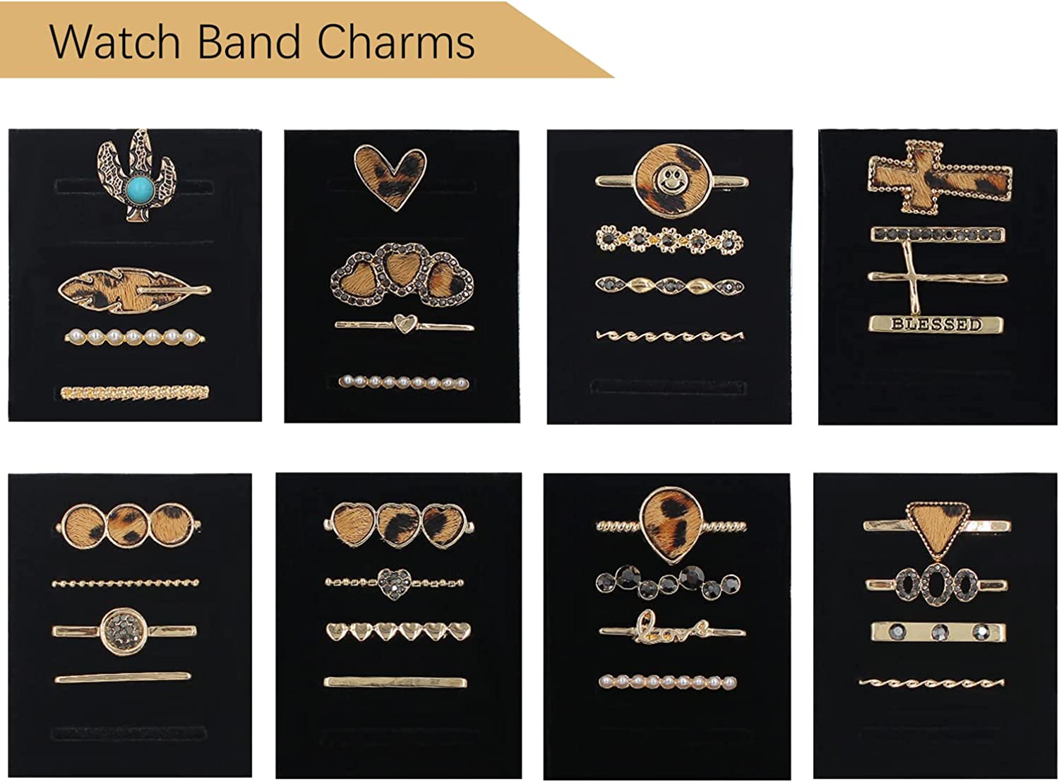 Leopard Watch Band Charms for Apple SmartWatch Band for Decorative Ring Loops 38 40 41 42 44 45mm Compatible with iWatch Series 8 7 6 5 4 3 2 1 Smart Watch Accessories Diamond Jewelry (No Watch Band)