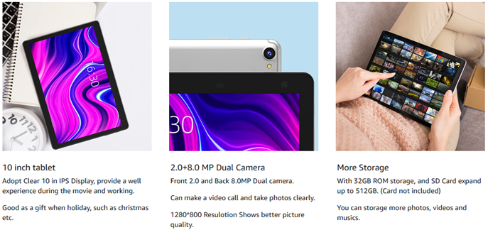 Tablets Adopt Android 10.0 system and Powerful Quad-core Processer, tablet will more smooth.