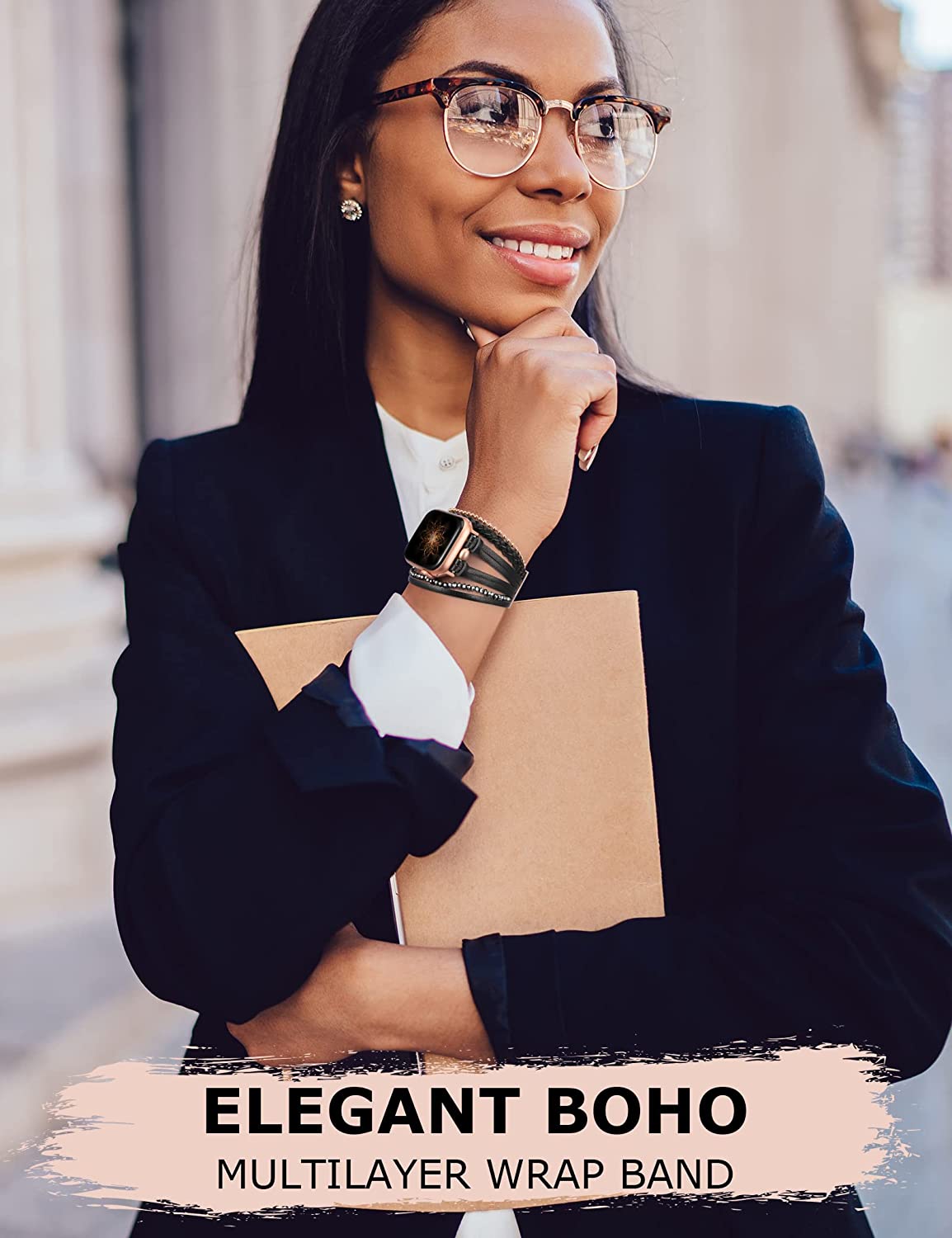 So Elegance and Eye-catching Design: Vintage elegance multilayer bracelets are made of high-quality faux leather and hand-woven, with high quality solid stainless steel links for easy resizing, won't pilling or peeling off. Wearing it will make your iwatch more fashionable and youthful. Exactly what you are looking for as far as a both casual and Bohemian style watch band.