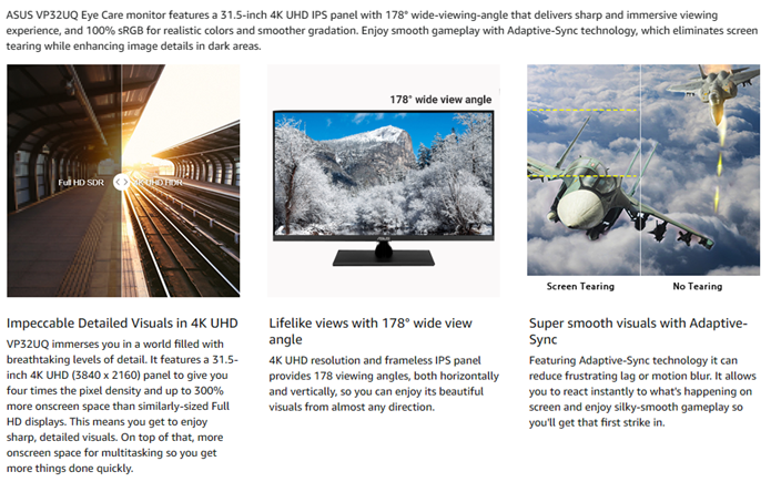 - 31.5-inch 4K UHD (3840 x 2160) resolution display with IPS 178° wide viewing angle for sharp and immersive visuals.Response time:4.0 milliseconds