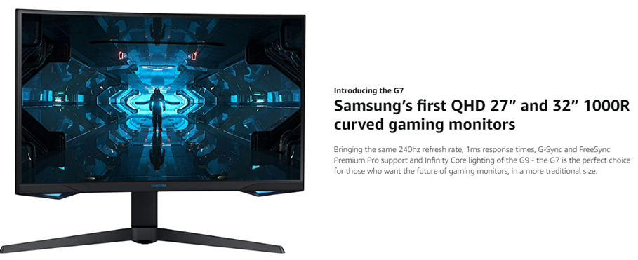 Bringing the same 240hz refresh rate, 1ms response times, G-Sync and FreeSync Premium Pro support and Infinity Core lighting of the G9 - the G7 is the perfect choice for those who want the future of gaming monitors, in a more traditional size.
