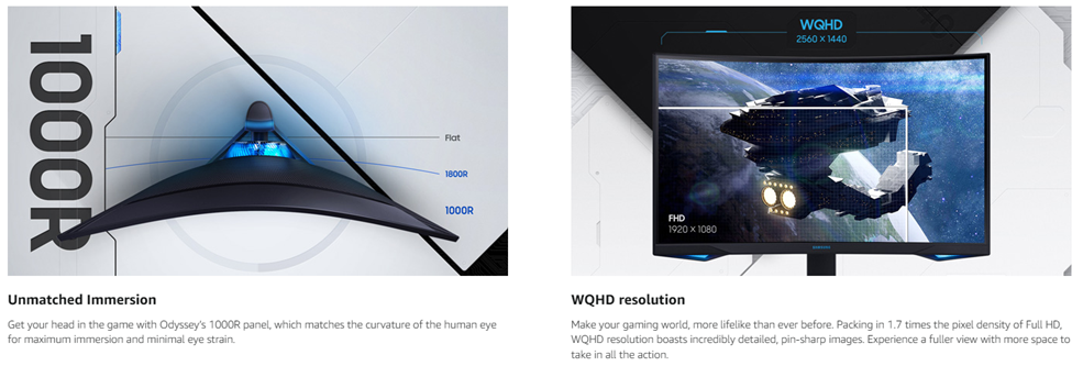 - UNMATCHED IMMERSION: Get your head in the game with Odyssey’s 1000R panel, which matches the curvature of the human eye for maximum immersion and minimal eye strain