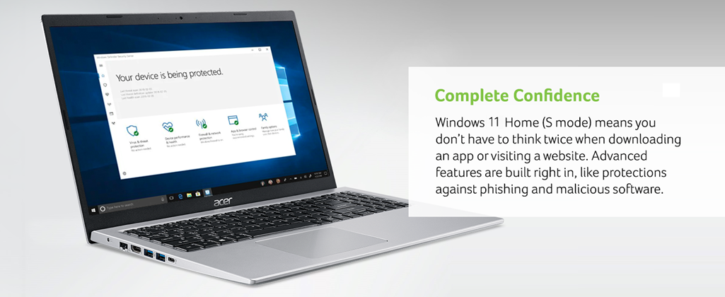 • Secure Operating System: Windows 11 Home in S mode comes with advanced security features built right in, like protections against phishing and malicious software so you don't have to think twice when navigating to a new webpage or downloading an app
