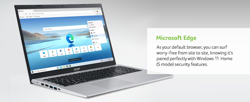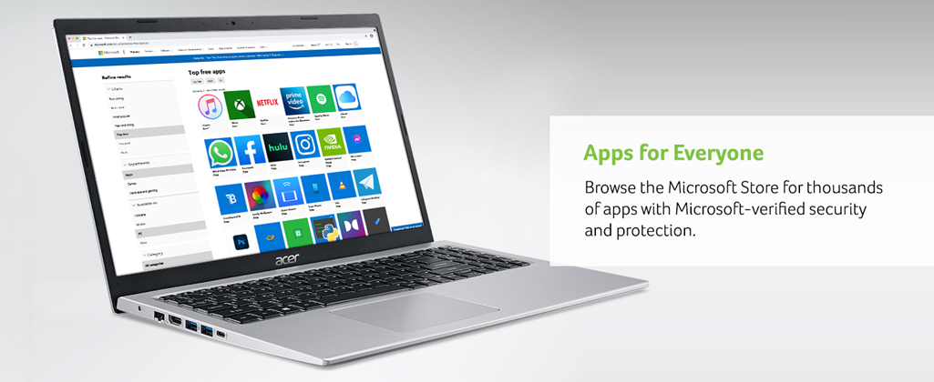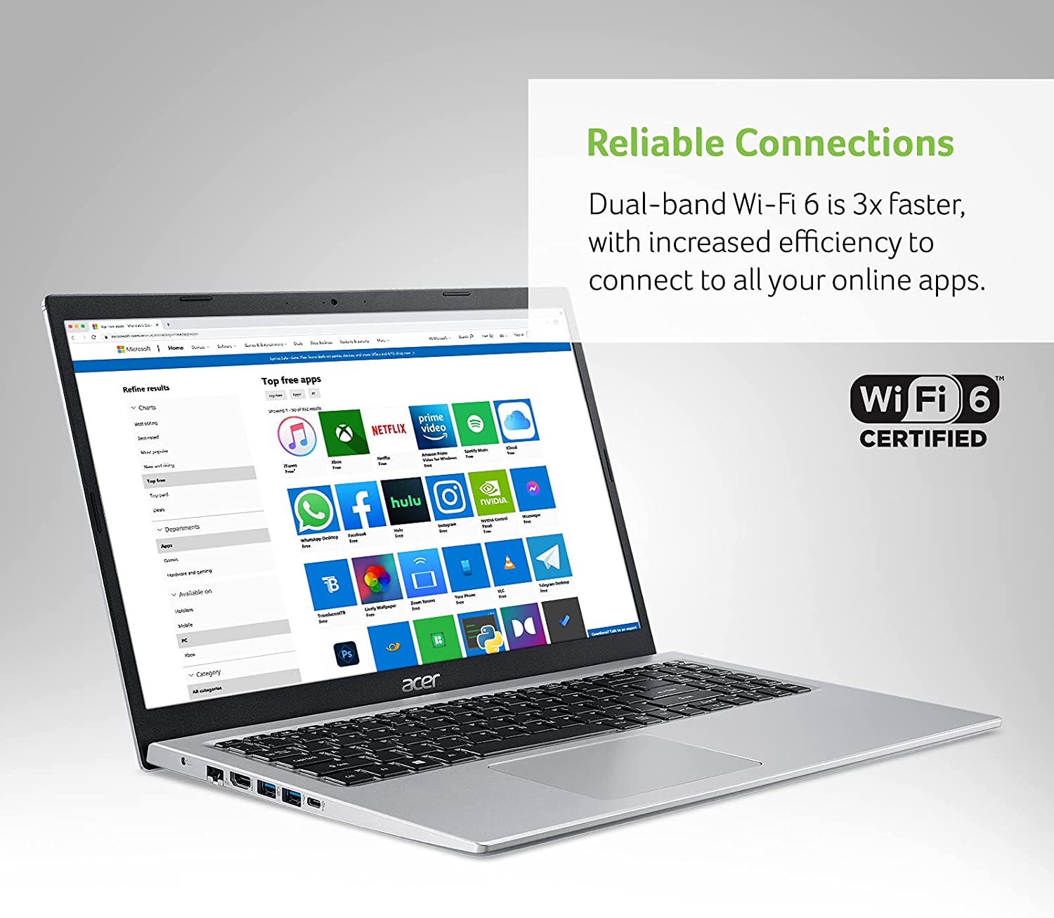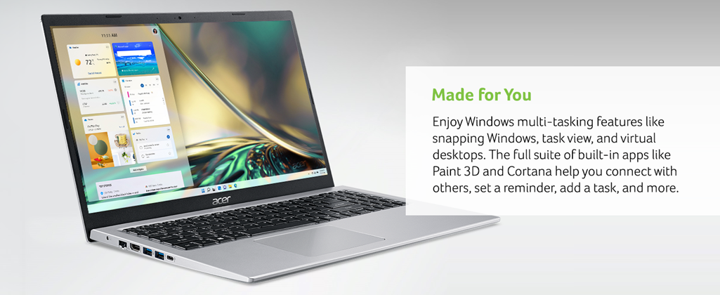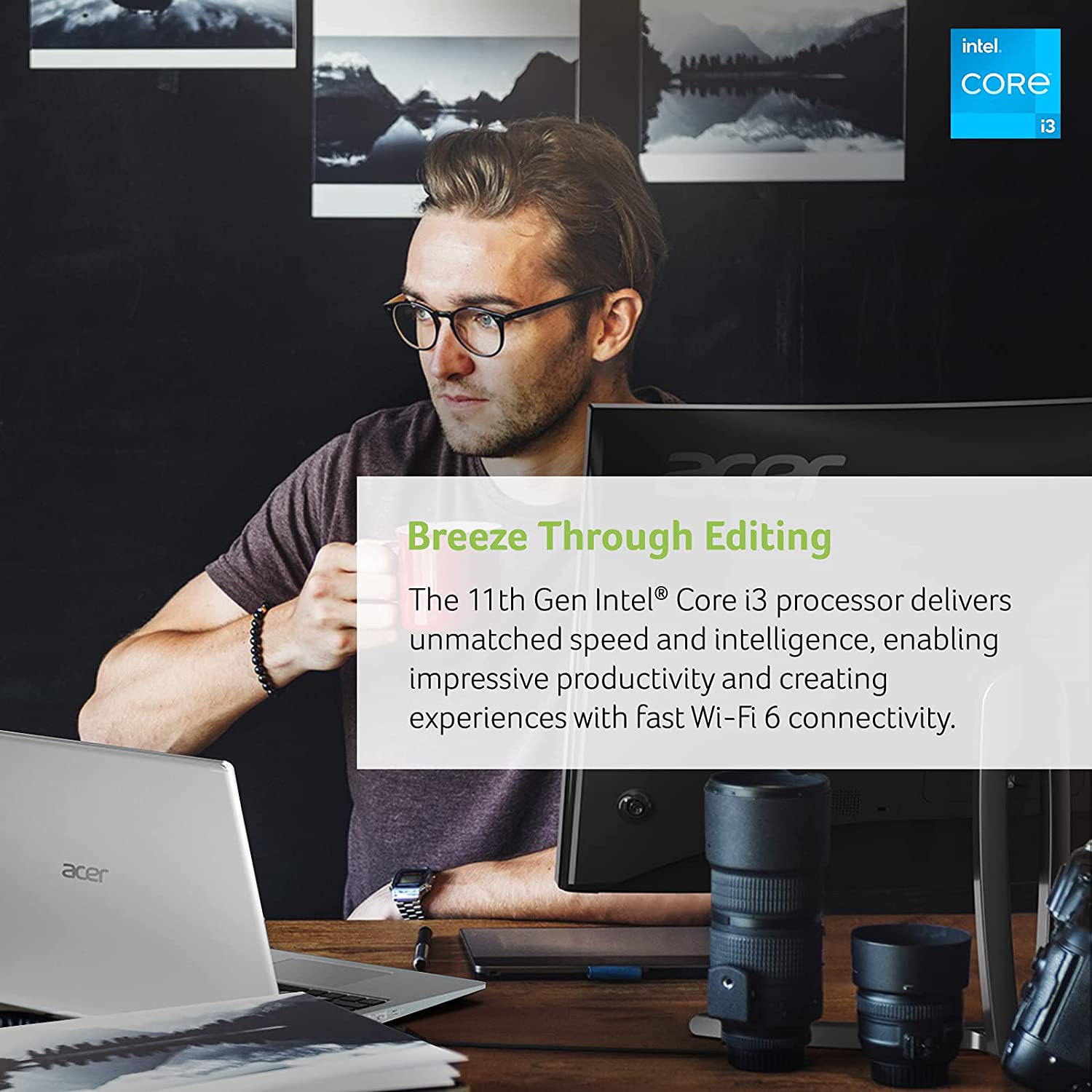 It's all about the innovation. Acer products are designed for your needs and accessibility with powerful features fit for your lifestyle. The Aspire 5 packs a lot of power into the portable design to suit the multi-tasking needs of you and your family. Break the boundaries of performance every time you fire up Acer’s new Aspire 5, which features the latest 11th Gen Intel Core i3 processor and faster Wi-Fi 6 connectivity for an awesome computing experience. This finely tuned design offers unmatched speed and reliability, making it ideal for things like photo and video editing, gaming, and work-related functionality. The narrow-bezel design provides plenty of screen so you can focus on what's in front of you, while the Full HD IPS display ensures crisp, true-to-life colors! With Windows 11 Home in S mode, you’ll experience fast start-ups, a familiar yet expanded Start menu, and great new ways to get stuff done. And with automatic updates enabled, you get all the latest features and security hassle-free. Work, play and share all in one device!