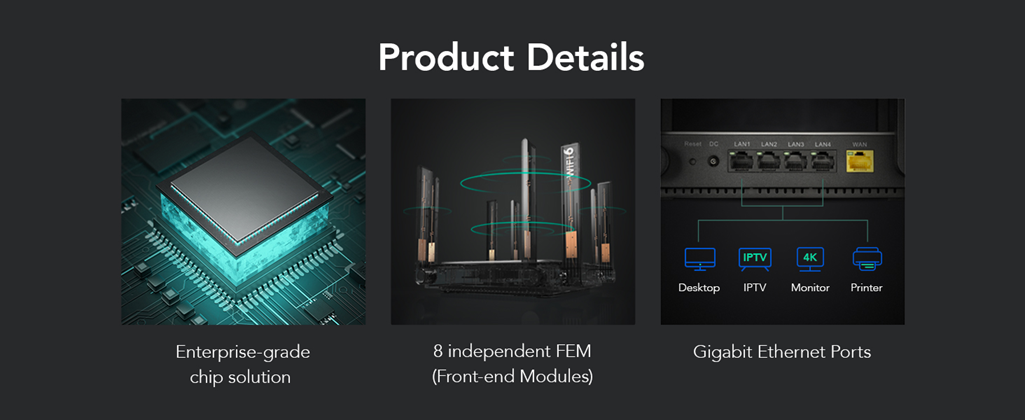 | Advanced Features | OFDMA, MU-MIMO, Beamforming, Xpress mode, BSS color technologies |