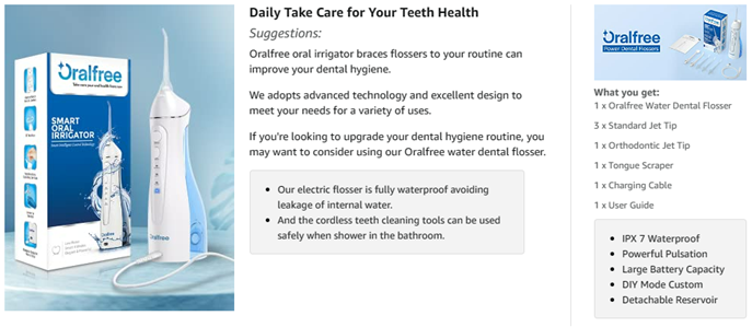 - ORALFREE ORAL IRRIGATOR PERFESSIONAL CUSTOMER SERVICE: 12 months after-sale service and friendly customer service. Oralfree is focus on helping customer to keep their mouth hygiene, guard their teeth health and Oralfree manufactured under strict quality standards to give our customers great experience, It's the great gift for friends