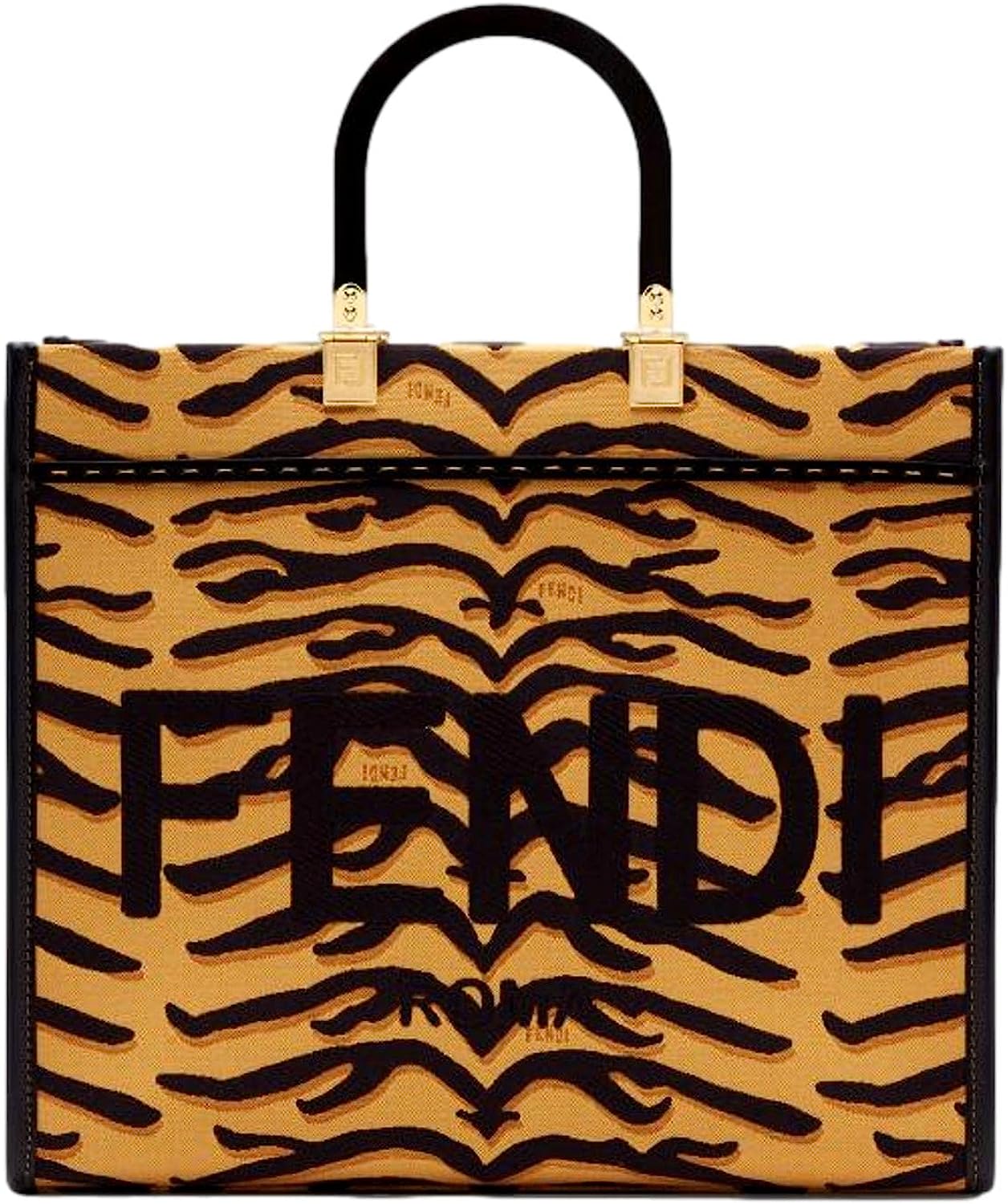 This Fendi Sunshine Shopper Bag combines classic lines with a bold tiger print in the canvas shopper tote. The designer was inspired by the Chinese Year of the Tiger celebrations and the bold black and yellow colors make the print pop.