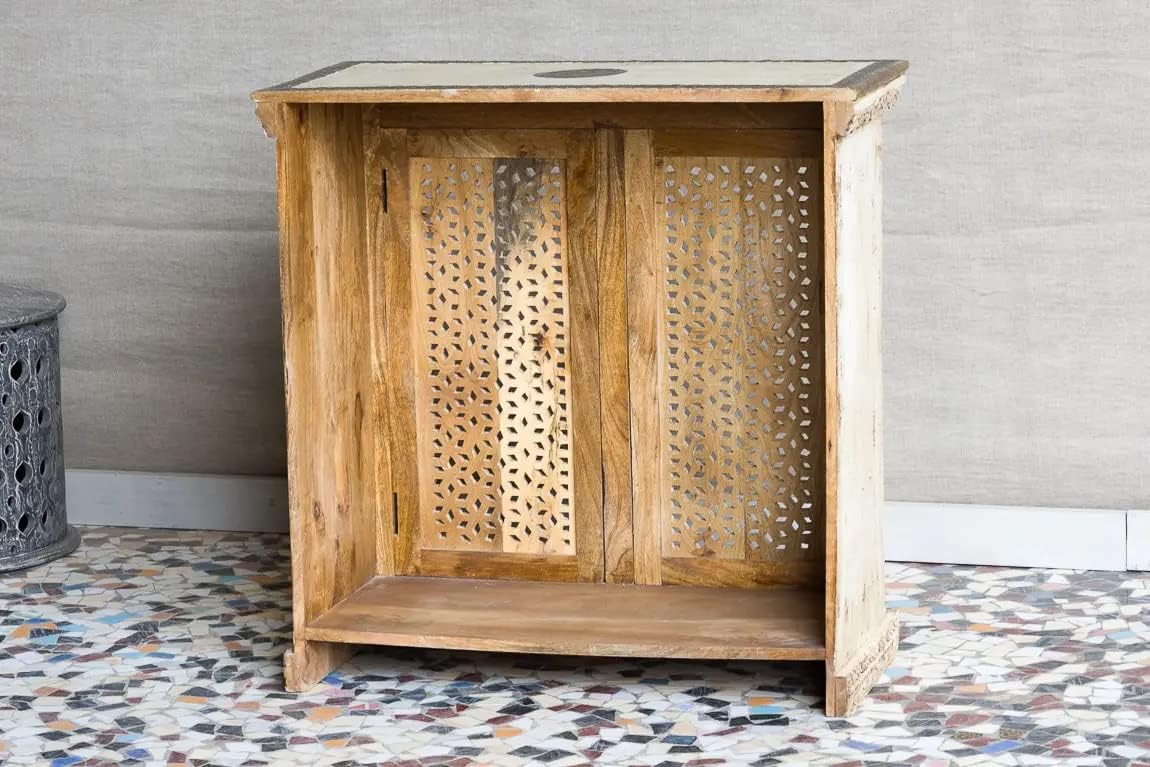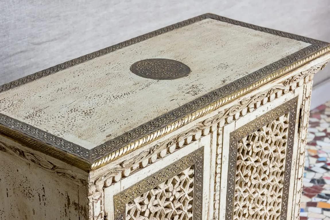 Antique Indian Brass Work Hand Carved Solid Wooden Cabinet Whitewash, Cabinet Storage Units Indian Solid Wood,Living Room Bedroom Furniture,Modern Cabinet