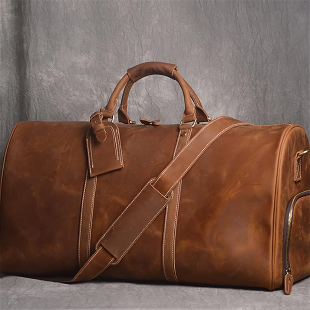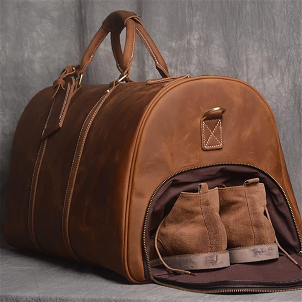 LIUJUN Vintage Men's Travel Bag Geunine Leather Large Capacity Single Shoulder Messenger For 15 Inch Laptop With Shoe Bag