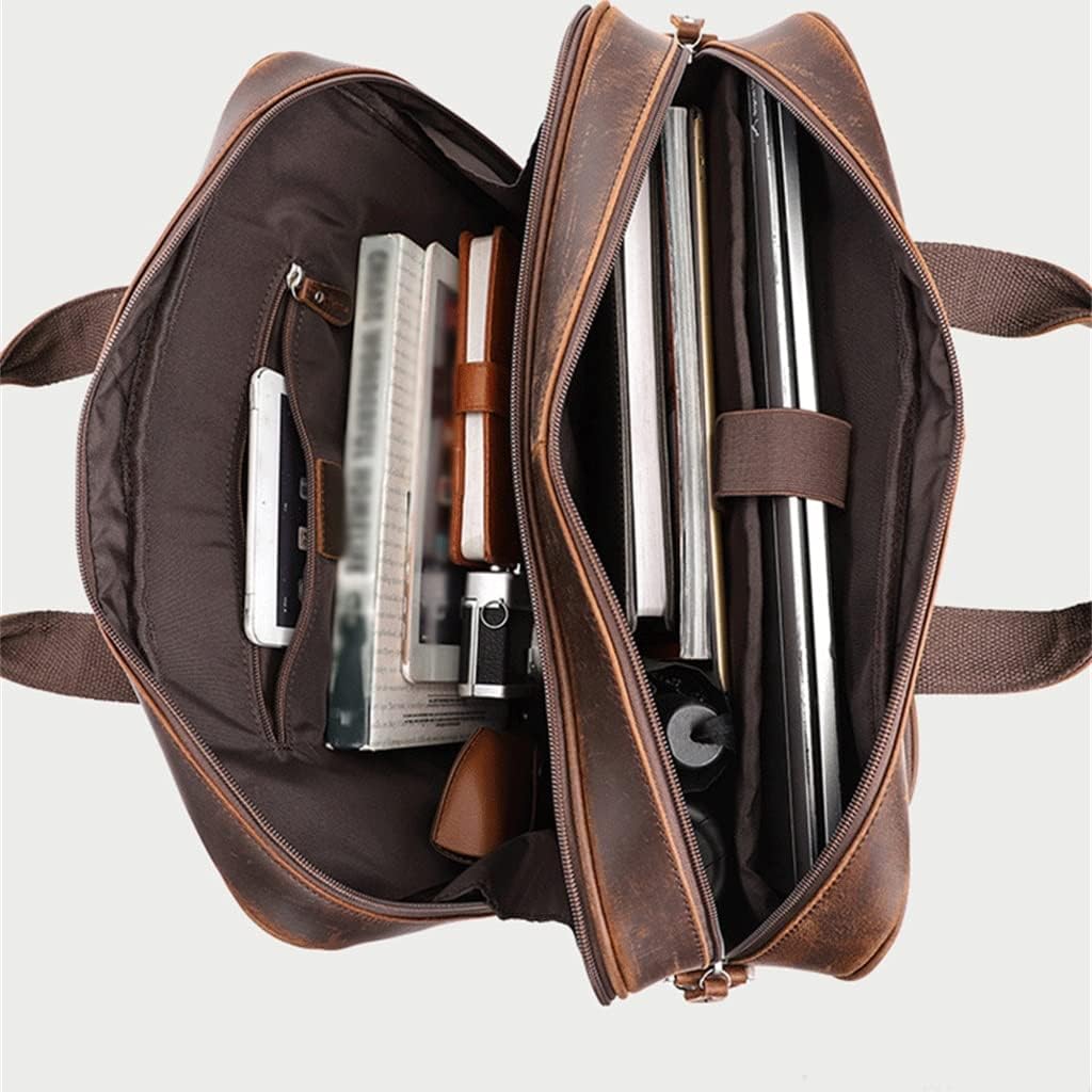 Men's Leather Briefcase Crazy Horse Leather 17" Laptop Business Tote Men's Tote Large Shoulder Bag.